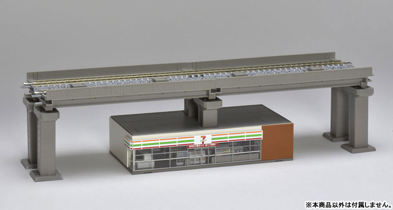 ・別売のPC水平橋脚P4を屋根に取り付けて店舗の上に高架橋を設置可能