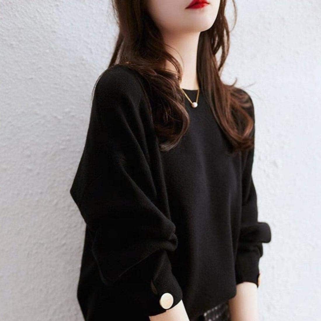 上品オシャレニット 袖ゴールドボタン付き きれいめ七分袖 【新品・未使用】