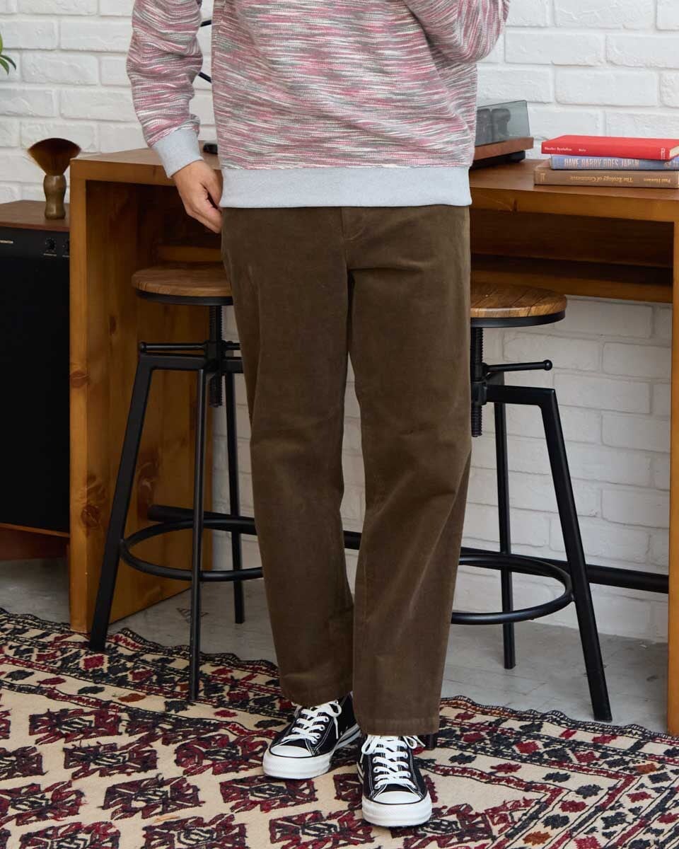 3297 コーデュロイパンツ ストレート ワイド タック入り ブラウン w82