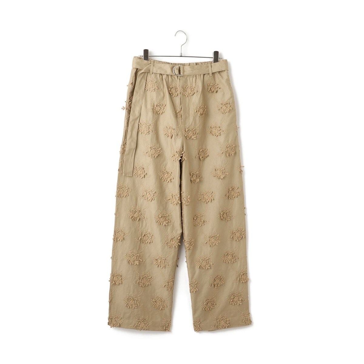 立体的な刺繍が印象的なツイルイージーパンツ。