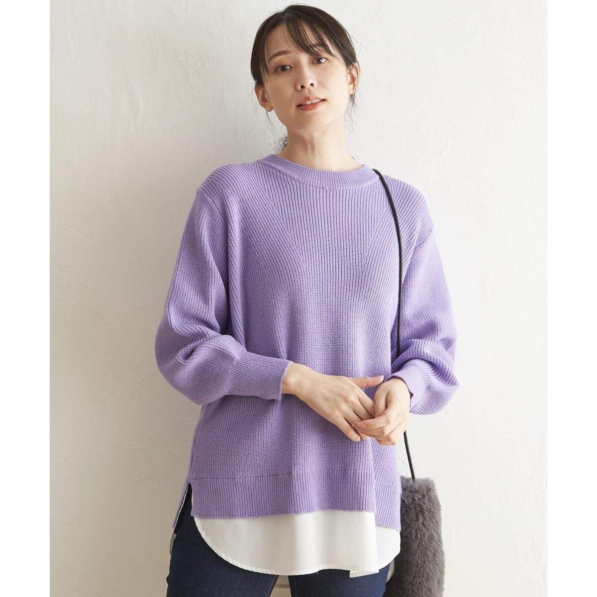 裾レイヤードニットプルオーバー
