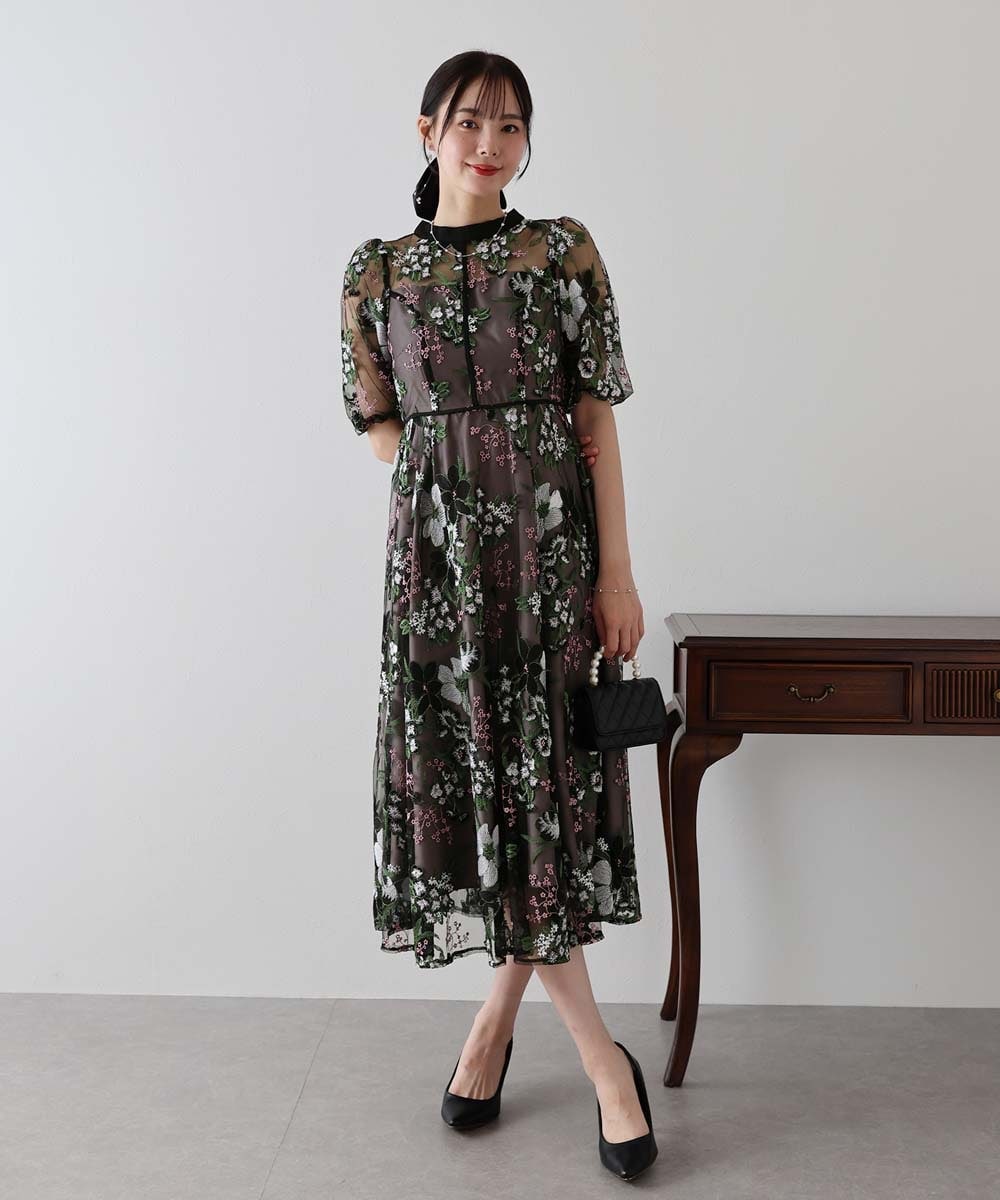 1枚で着映えする花柄刺繍ドレス。