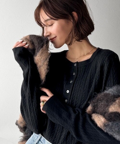 お買い得! リブ編み Vネック風 ヘンリーネック ニット ブラック フリーサイズ