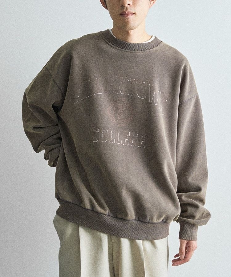フロントの褪せたカレッジロゴプリントがアクセントとなり、フェード加工でヴィンテージライクな印象を演出。