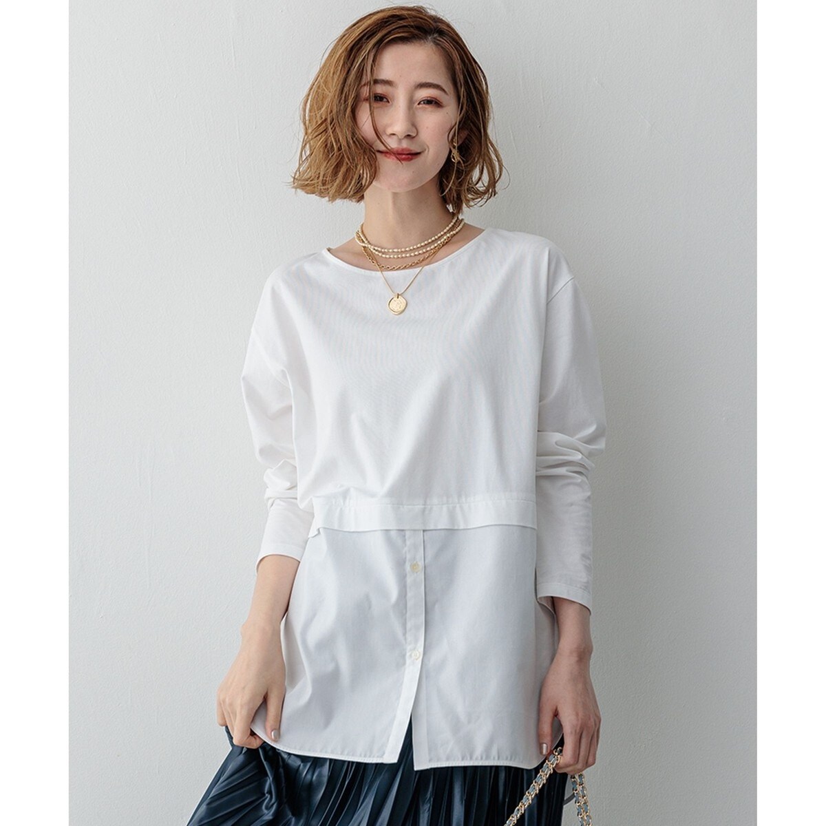 ナチュラルコットンベア シャツレイヤード カットソー(品番:KKWOGW0433)