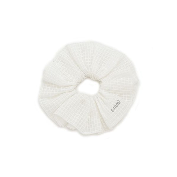 チェック柄のオーガンジーとチュールの二つの生地を使用したシュシュは、モードかつフェミニンな仕上がりに。同じ生地を使ったお洋服とセットでの着用がおすすめ。