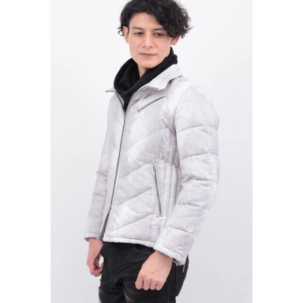 T/Cスエード×ヘアライン柄ダウンブルゾン。