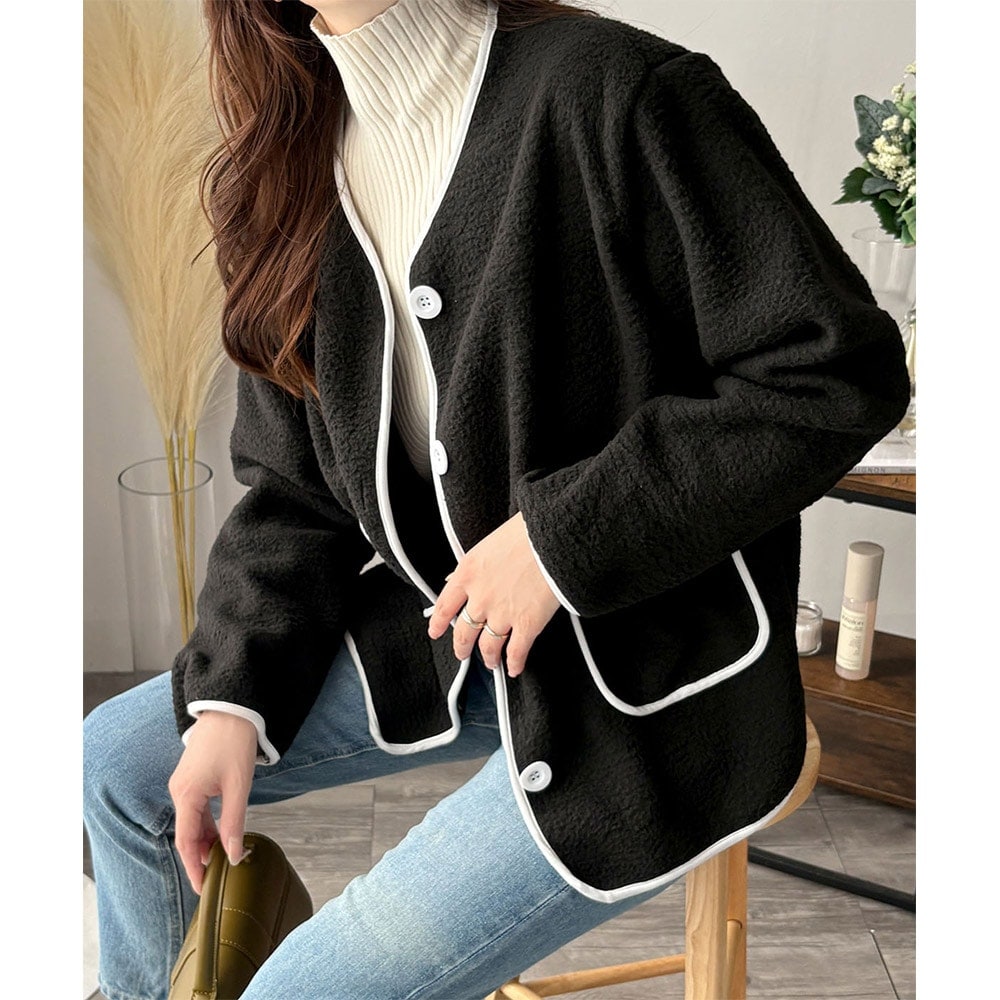 新品 配色ライン入り シャギーフード ジャケット