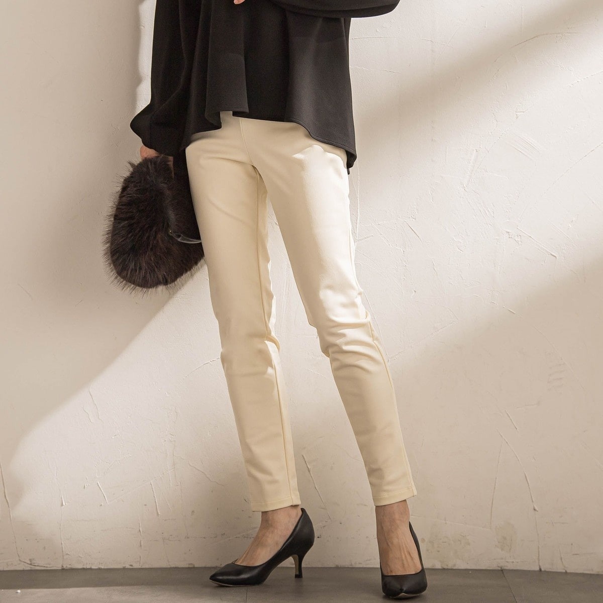 ワンピースやチュニックアイテムのボトムとしてのスタイルがおすすめ。