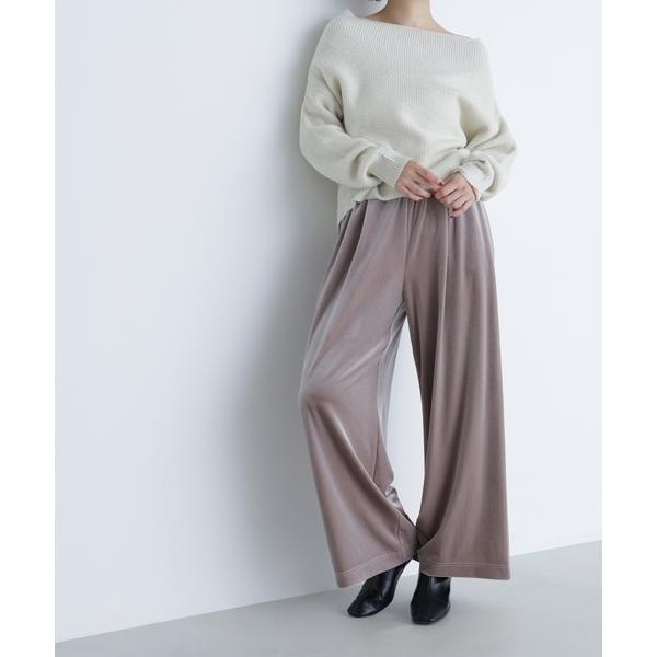 リラックス感漂うイージーデザインでデイリーに活躍できるベロアパンツ。ウエストは総ゴム仕様ではきやすくなっています。光沢感のあるベロア素材がコーディネートに華やかさをプラス。落ち感のあるストレートシルエットで美脚見えを叶えます。<素材>なめらかな肌触りと上品な光沢が魅力のベロア素材を使用。<詳細>仕様・開閉なし裏地・あり透け感・なし / 光沢・なし / 伸縮性・なし生地の厚さ・普通※モデルの着用画像の場合、光の当たり具合により、実際の色味と異なって見えることがございます。色味は、商品単体の画像をご参照ください。