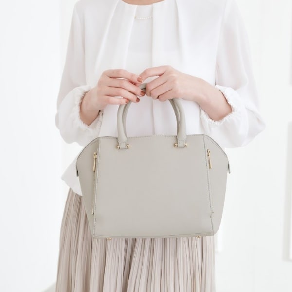 お仕事やセレモニーでもお使いいただけるしっかりフォルムと素材感が上品な、膝に収まるサイズ感が人気のトートバッグ。