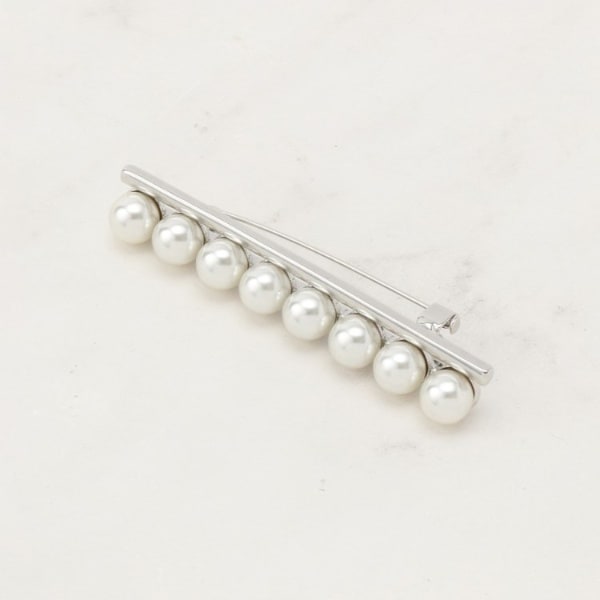 パール調を並べたシンプルながら華やかで存在感のあるデザインのブローチです。