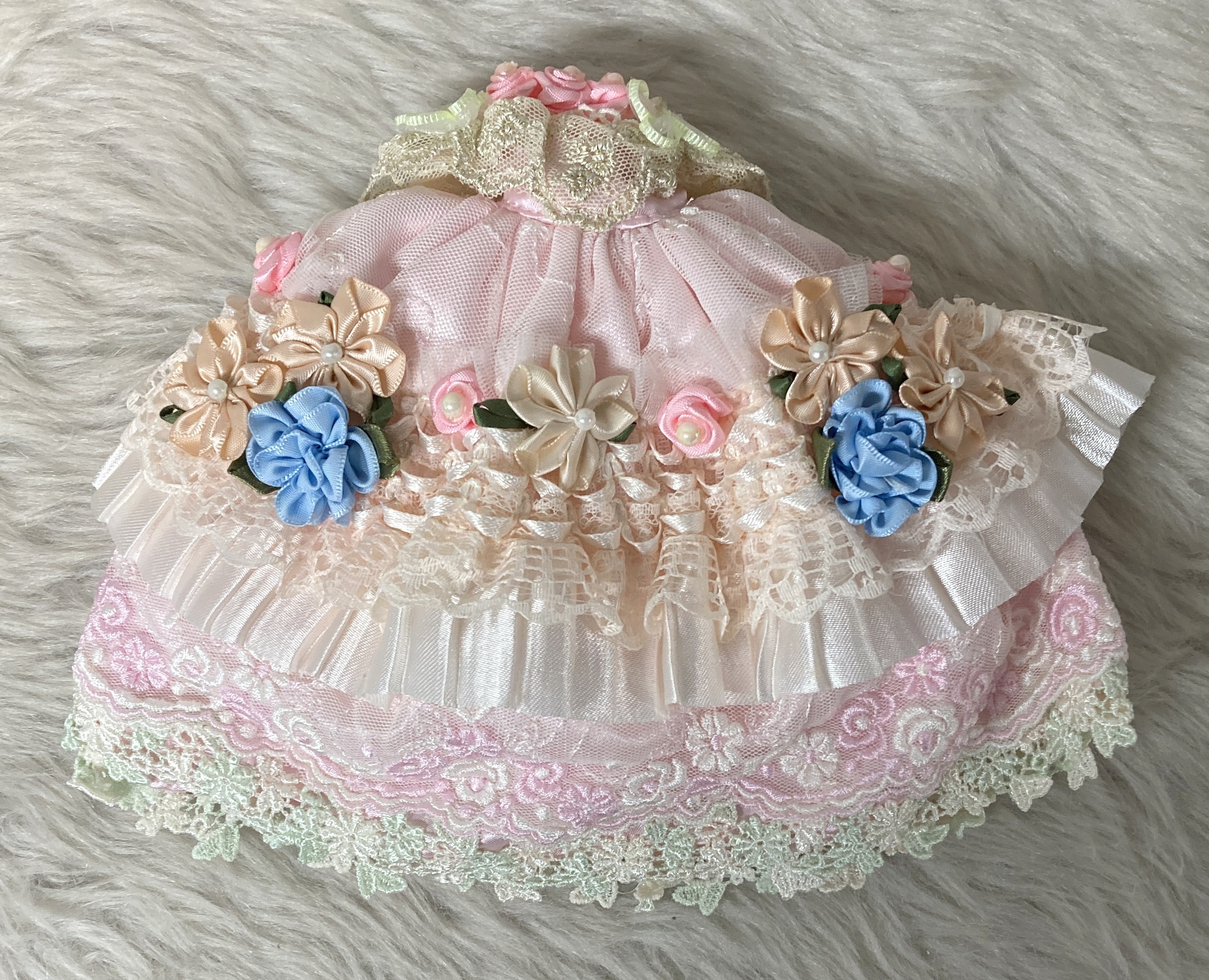 ancienne ドール衣装 DearSDサイズ?ドレスセット 白×ピンク 花柄