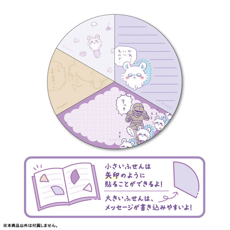 「ちいかわ」から、円グラふせん が登場! その名の通り、円グラフのようなふせんです♪ 小さいふせんは矢印のように貼ることができます。 大きいふせんはメッセージが書き込みやすいです。
