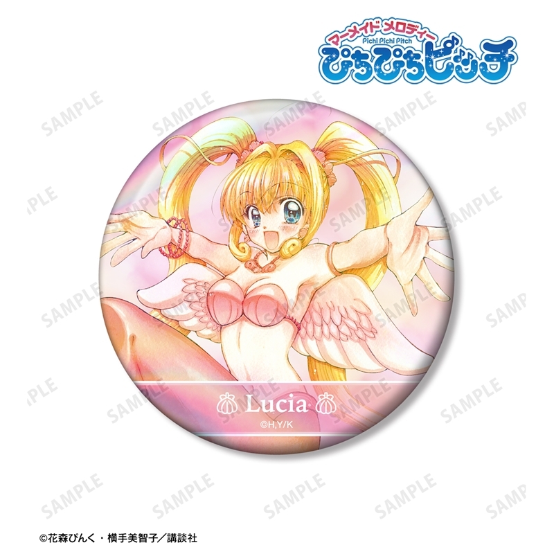 【グッズ-バッチ】ぴちぴちピッチ 花森ぴんく先生 描き下ろし リナ 羽を纏ったマーメイドver. オーロラ缶バッジ【再販】