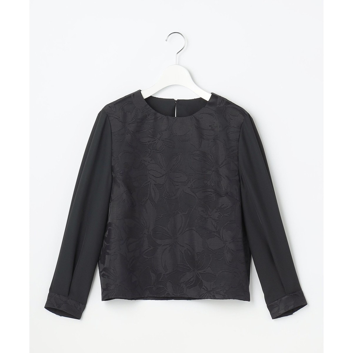 程よいボリューム袖と繊細なプリントで華やかさを表現するブラウス■デザイン身頃とカフスはオパール、お袖は無地の別布でブロッキングしたプルオーバーブラウスです。裾部分に透けない部分を施した手の込んだパネル柄は、繊細なプリントの陰影の印象をより際立たせ、シンプルなデザインを程よく華やかに演出します。素材の繊細な華やかさを生かし、ネックラインの美しいシンプルなブラウスに仕上げました。手首が少し見える9分袖ですっきりとした印象になっています。ジャケットを脱いだ時も華やかに見える程よいボリューム感のパフスリーブが上品で、無地のボトムと合わせても、さりげない華やかさのあるコーディネートが完成します。同素材のスカート(SKWMLS0007)と合わせてワンピース風のコーディネートもおすすめです。■素材大胆な花柄をオパールの透け感で表現した、さりげない陰影感が特徴のプリントです。適度な光沢感とハリ感を兼ね備えたサテン素材をオパール加工することで、透け感と凹凸感を表現した素材です。無地素材には、膨らみ感と上品な風合いのあるツイル素材を使用しています。■同素材アイテムスカート(SKWMLS0007)ワンピース(OPWMLS0007) ※画像はサンプルを使用している為、実際にお届けする商品と仕様、加工、サイズが若干異なる場合がございます。予めご了承ください。※撮影環境の都合上、実際の商品と色味が異なって見える場合がございます。