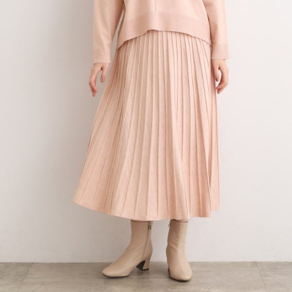 トップスを変えて単品使いすれば、ニットならではの柔らかさとプリーツ風の陰影で、大人のカジュアルスタイルにもマッチします。
