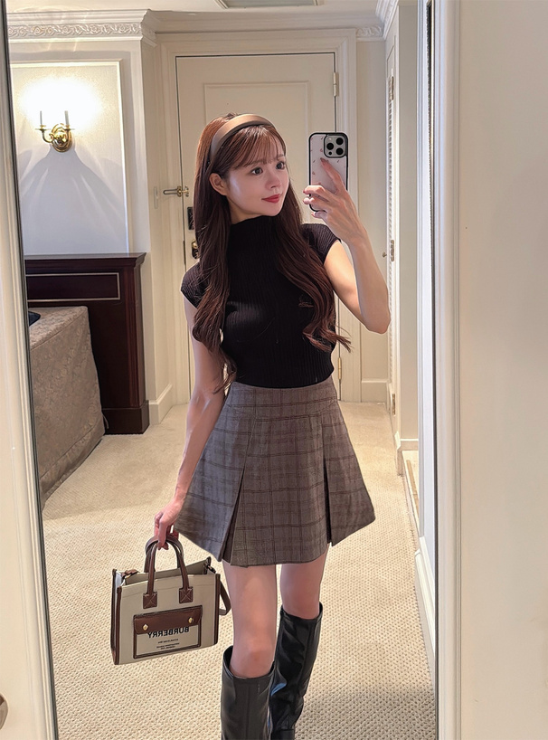 落ち着いた配色のチェック柄が、クラシックなニュアンスを添える。