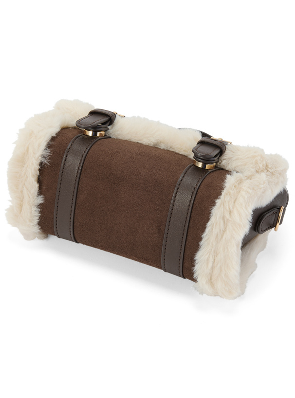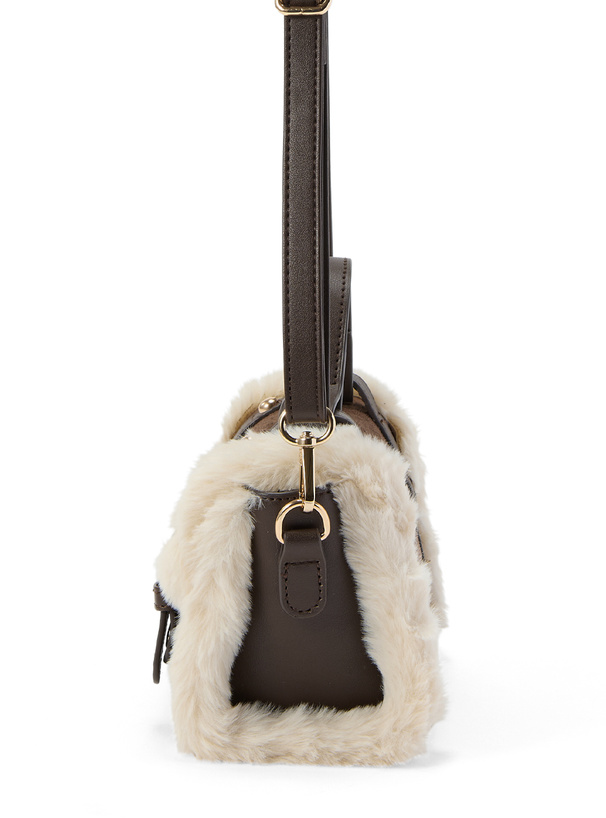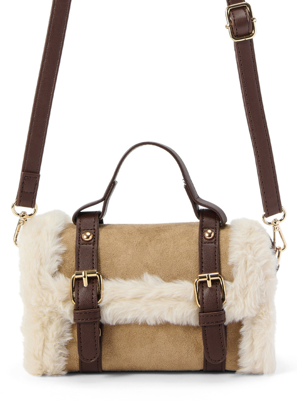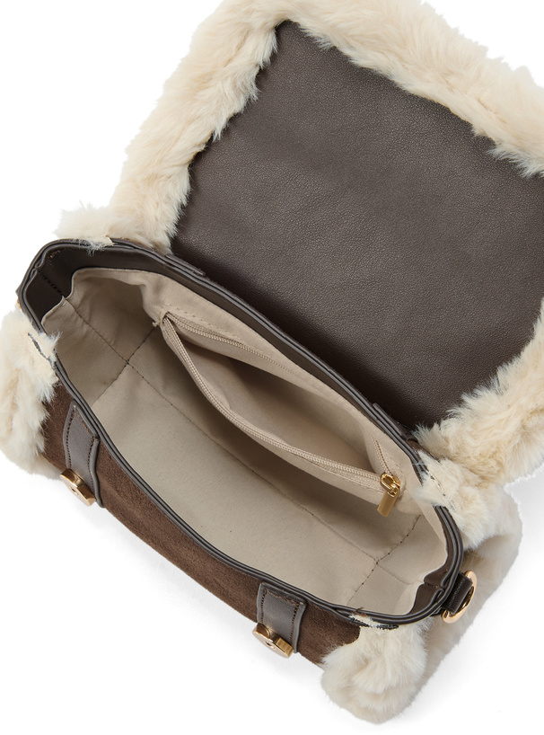ふわふわのエコファーとスエード調素材を組み合わせた、季節感たっぷりなミニバッグ。