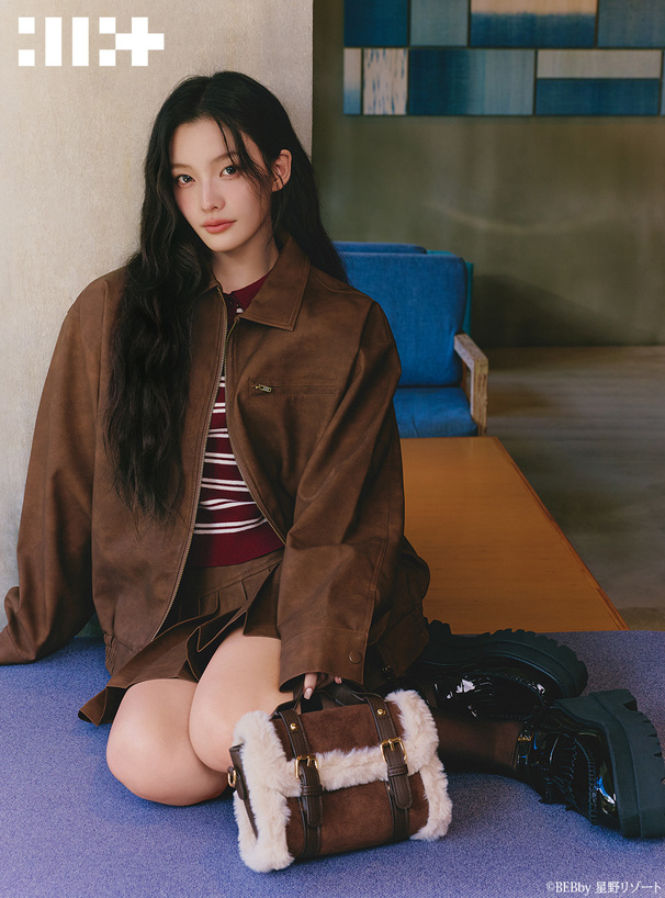 アクセントにベルトディテールをあしらい、甘すぎない印象に仕上げた。
