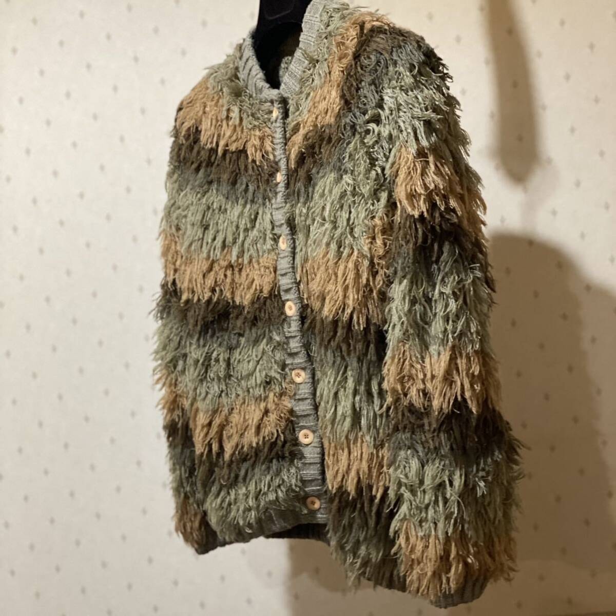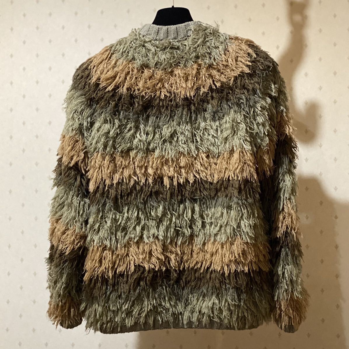 毛足の長いアクリルニットのフリンジが全面に施された美しく創造性溢れるデザインです。
