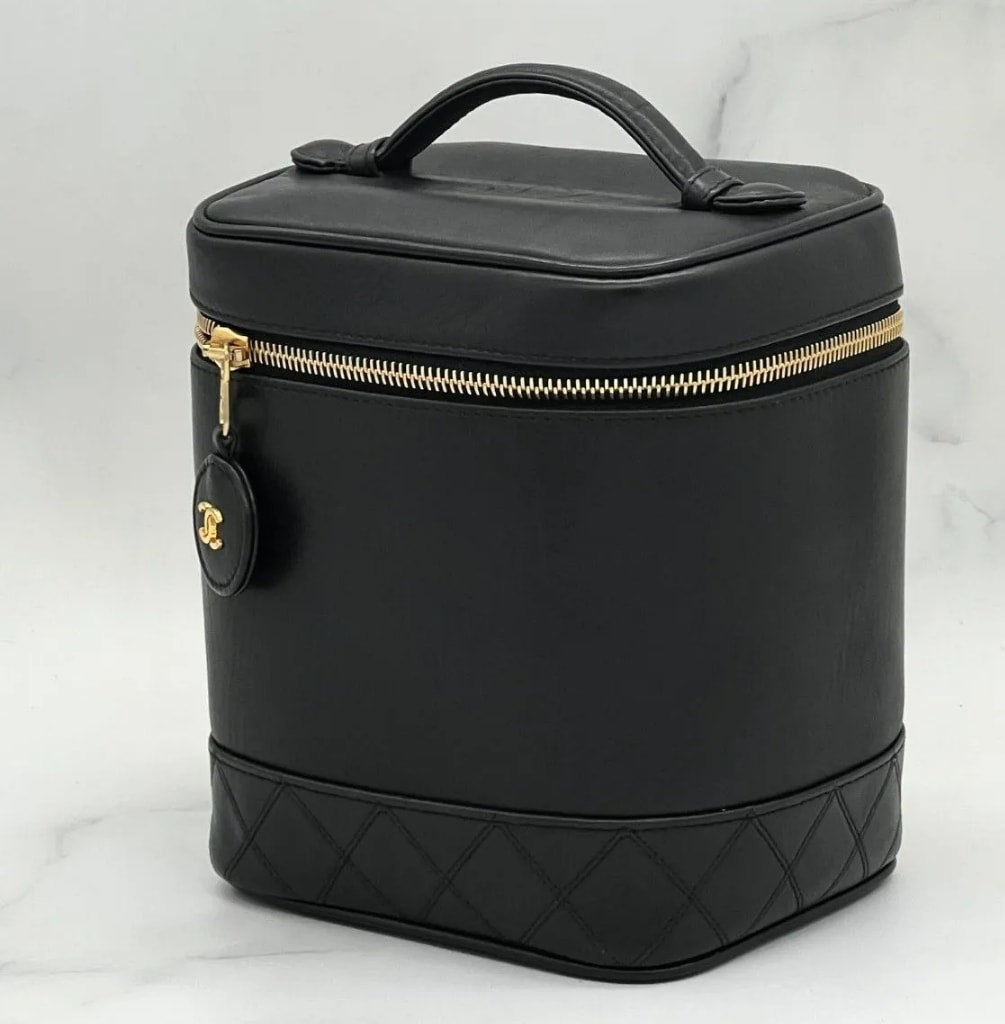 ジッパー部分にCCマークがゴールドで入り、ボトムのみマトラッセのステッチが入ったシャネルらしい一品。