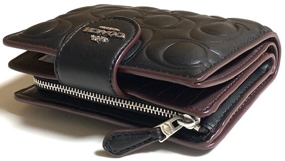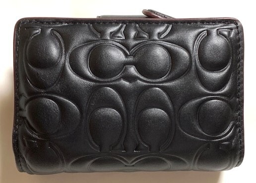 ソフトなナッパレザーにシグネチャー柄が型押しされた、コーチらしいデザインのお財布です。