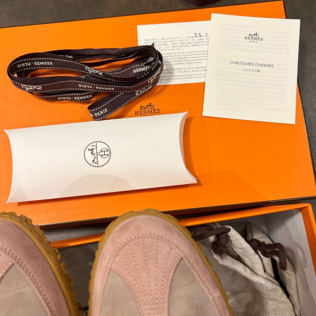 2024年11月エルメス店舗で購入新品未使用 サイズ:37色:ローズ・カンカン / ローズ・アクアレル定価:187000付属品:オレンジボックス、リボン、ショウップカード、保存袋、靴紐、説明書