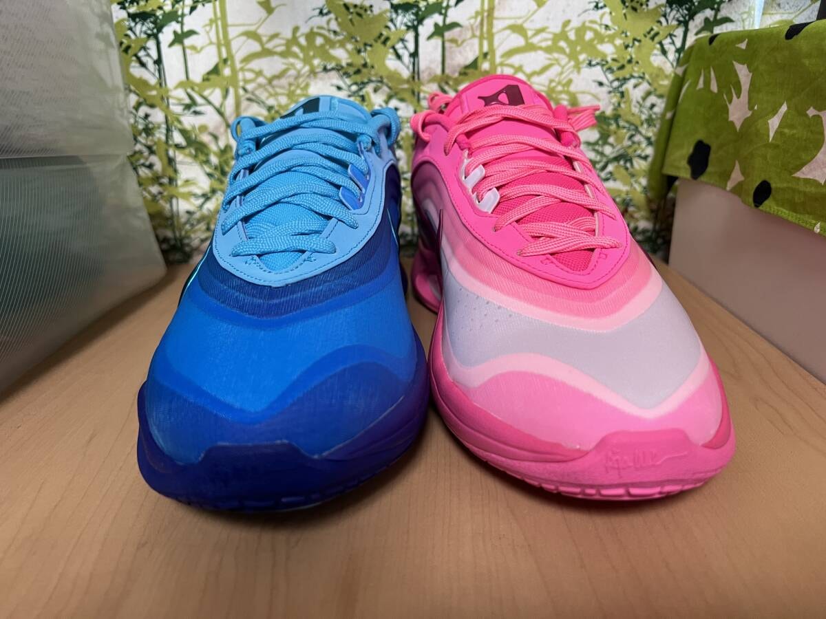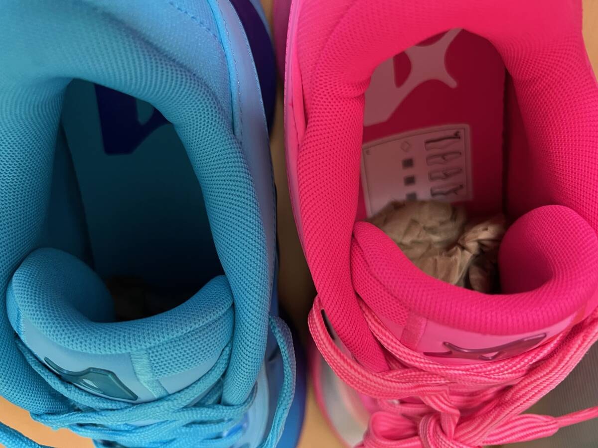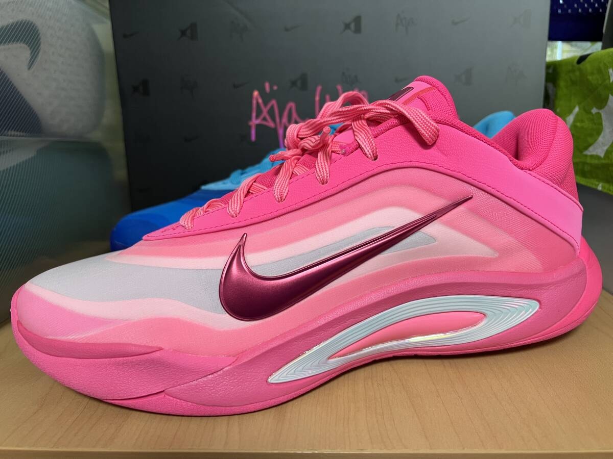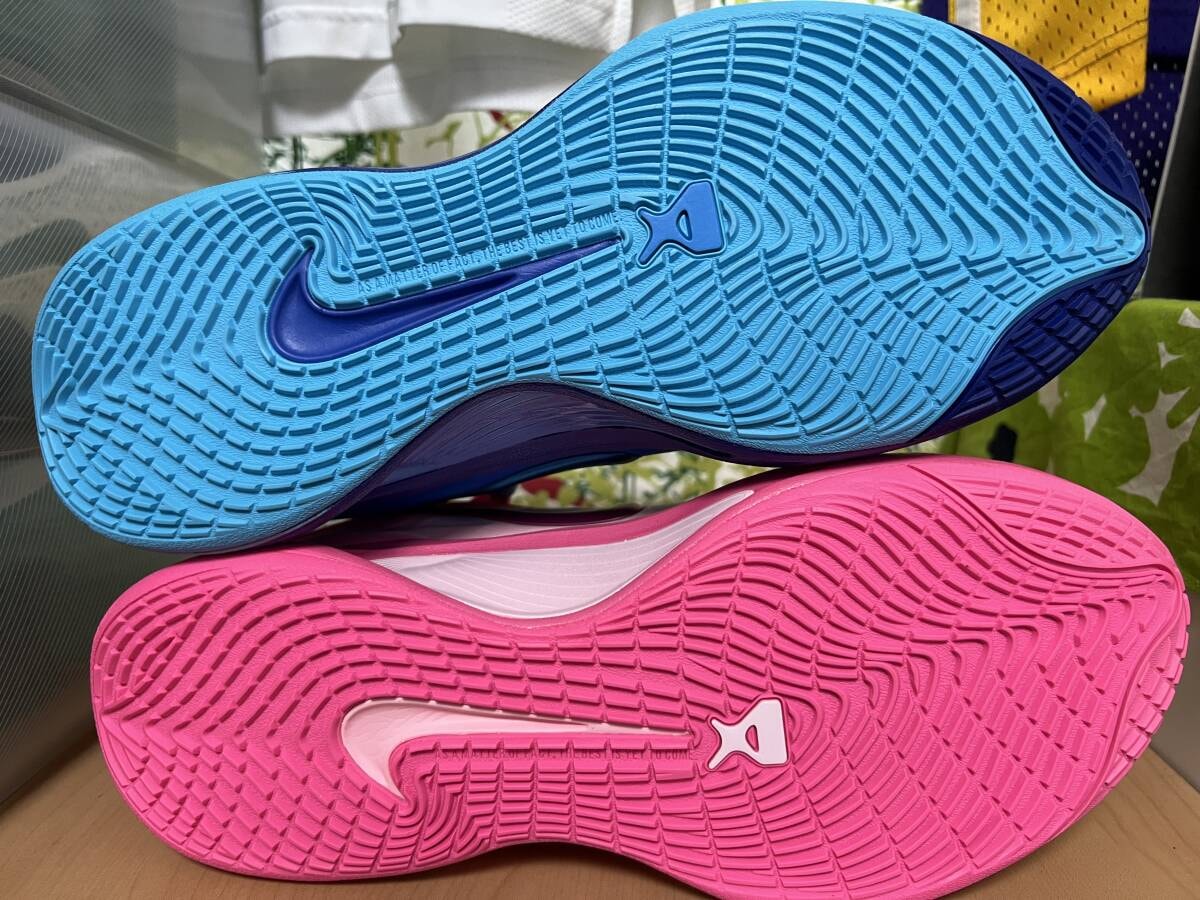NIKE A'ONE 日本未販売カラーになります 新品・箱ありになります メンズUS9・ウィメンズUS10.5 右足 blue furry FA8605-401 左足 a'ura pink FA8605-601 のアシンメトリーになっています どちらも海外限定カラーで日本には売っていないです レブロンの娘さんがバレーボールでこの履き方してました EPサイズでなくグローバルサイズになりますのでさらに細めです 足が細い人ならそのままのサイズでいいですが、足が広い人はハーフサイズかワンサイズダウンの人がいいと思います