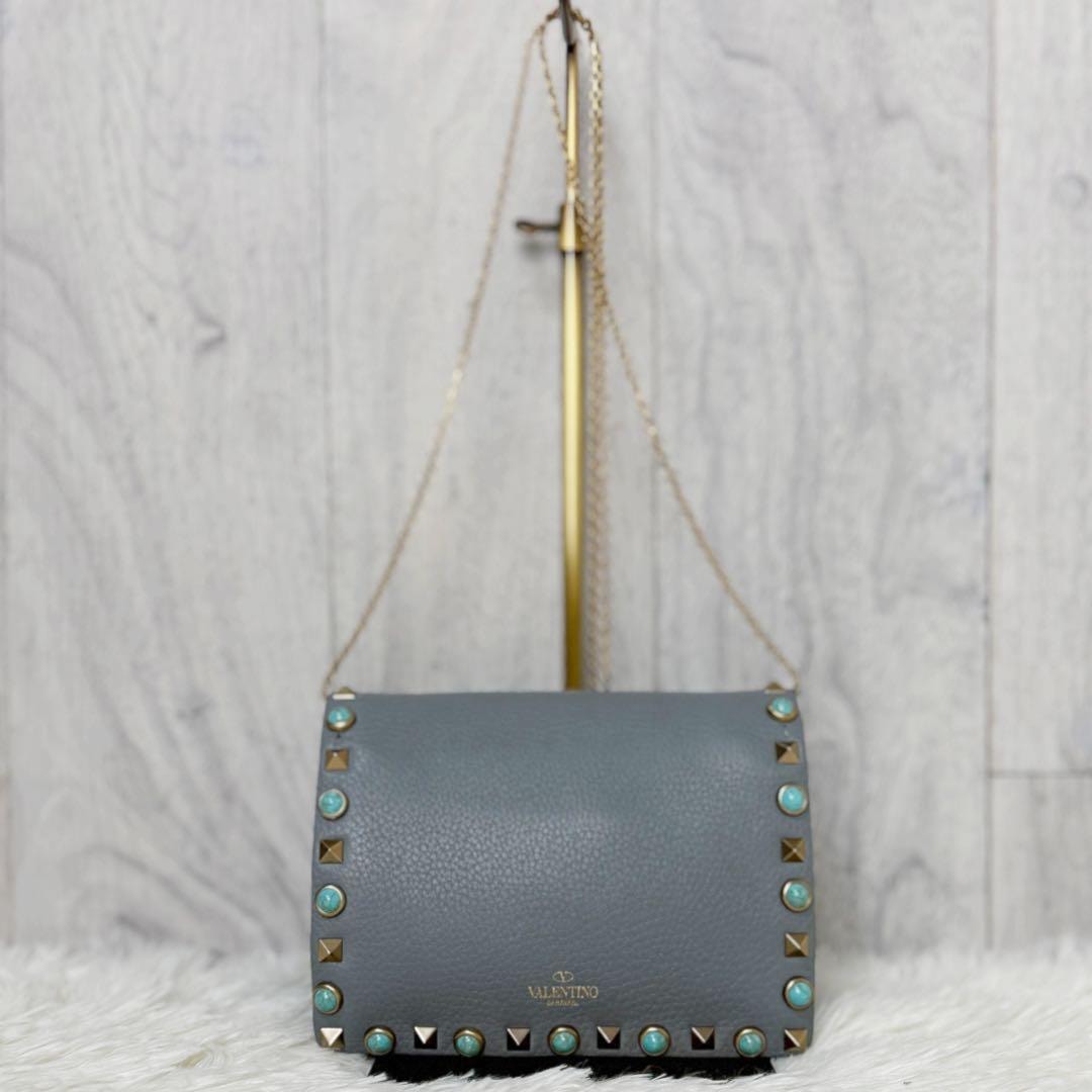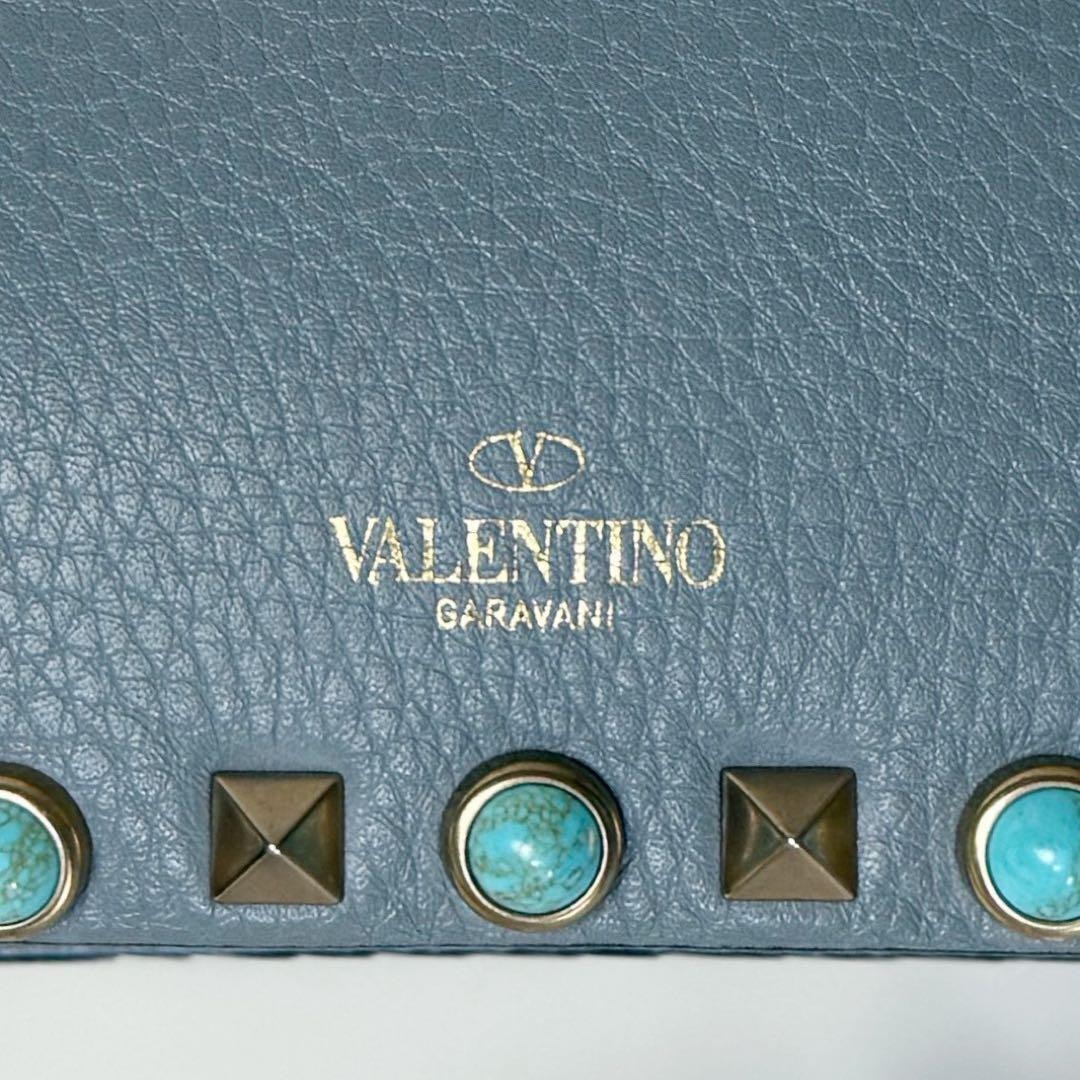 VALENTINOのブランドロゴ ロックスタッズ ターコイズ レザー チェーン ショルダーバッグです。