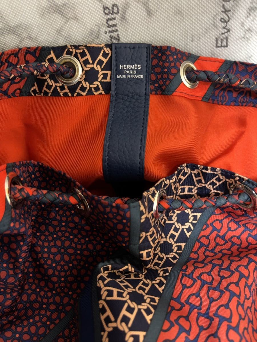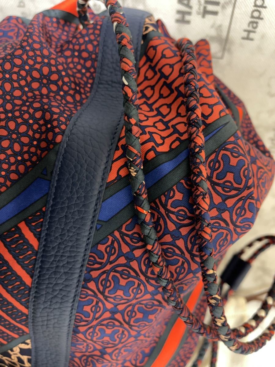 シルクとレザーを使用したカジュアルかつエレガントなショルダーバッグです。