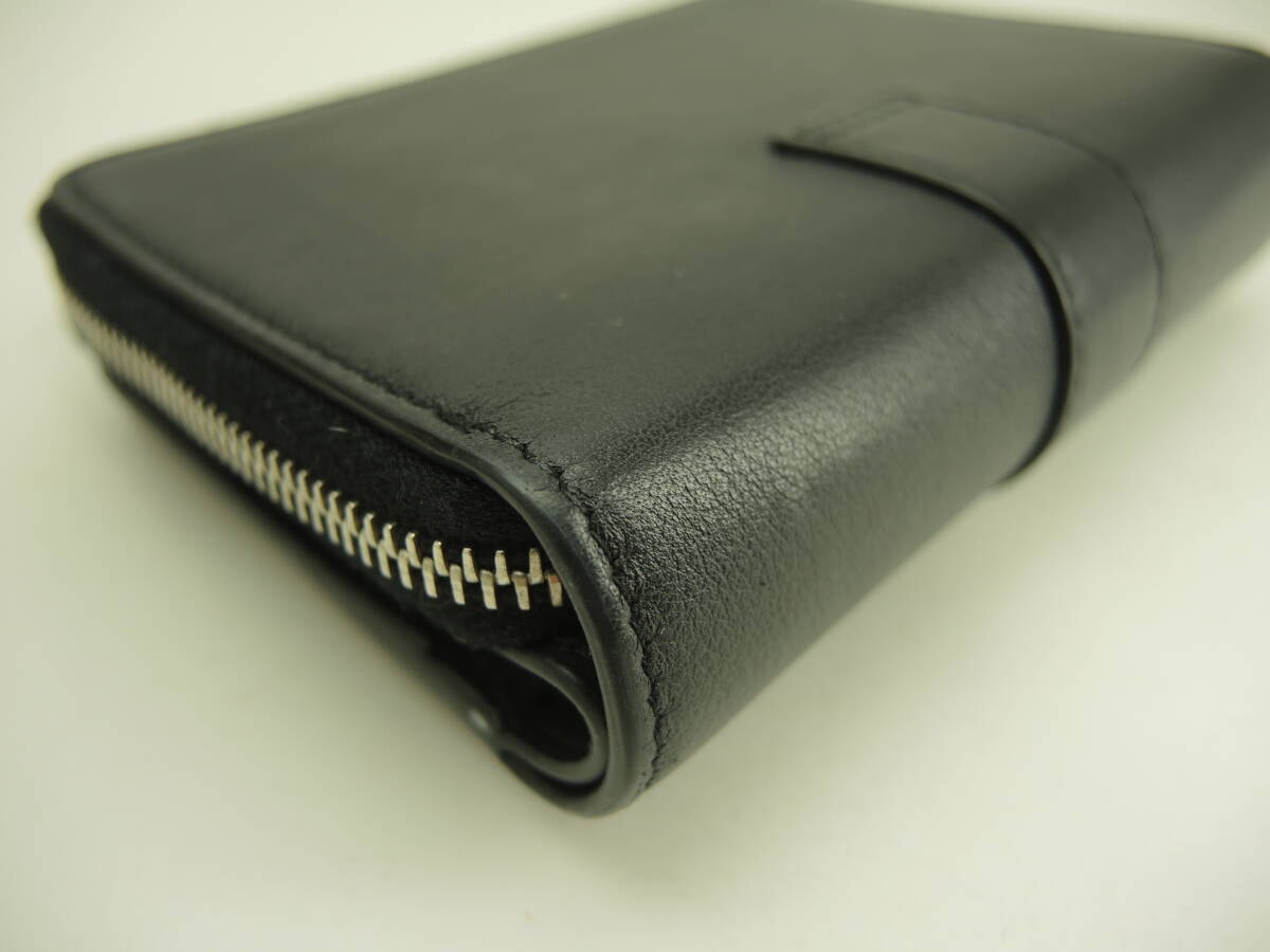 情報 : ボディは柔らかいレザーで仕上げられておりますので押し痕・薄スレがところどころ少しございますが、目立つダメージもなく綺麗なほうです。角・湾曲部にスレはございません。財布内・札入れ内はスレ・汚れなく綺麗です。コインケース内は薄スレ・銭汚れが全体的にございます。ファスナーの開閉はスムースです。ホックボタンは弱りもなくシッカリと閉まります。正面金具は薄スレ・小傷が全体的に少しございますが、メッキ剥げもなくピカピカです。