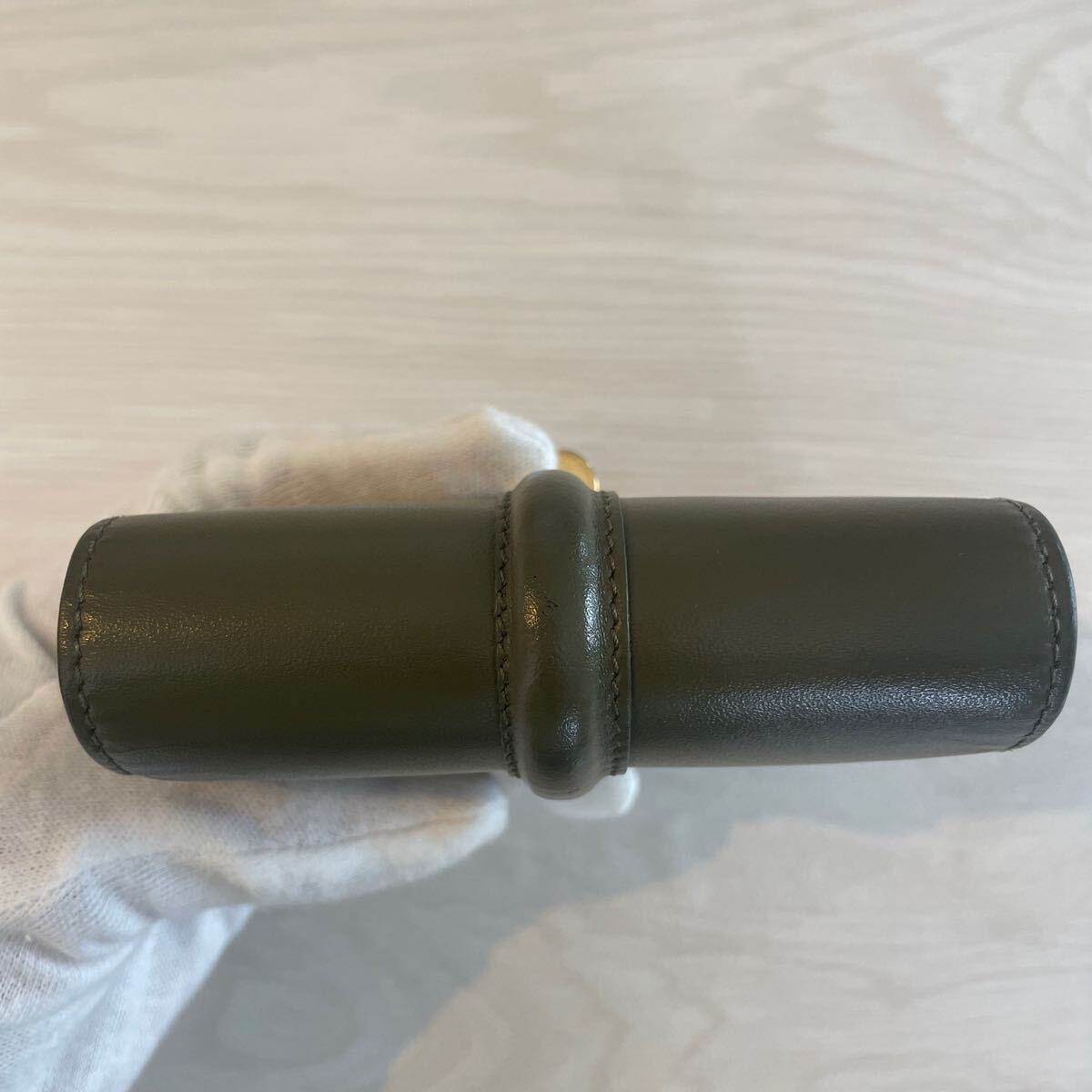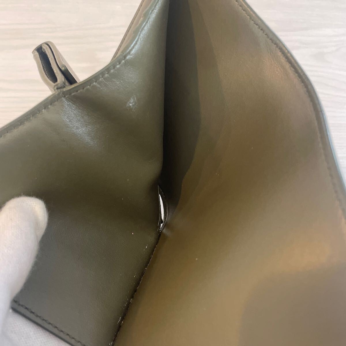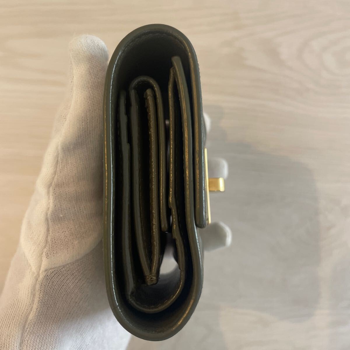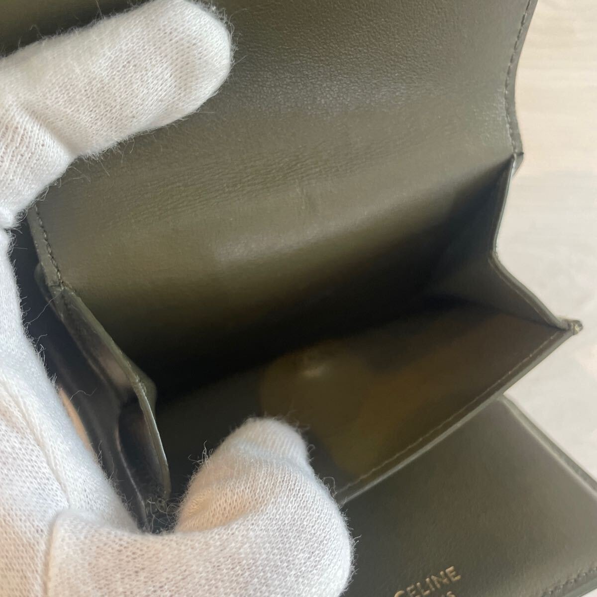 美品【セリーヌ】スモール トリフォールドウォレット 16(セーズ) / シャイニーカーフスキン 三つ折り財布 折財布 CELINE カーキ 緑 グリーン 深緑 オリーブ