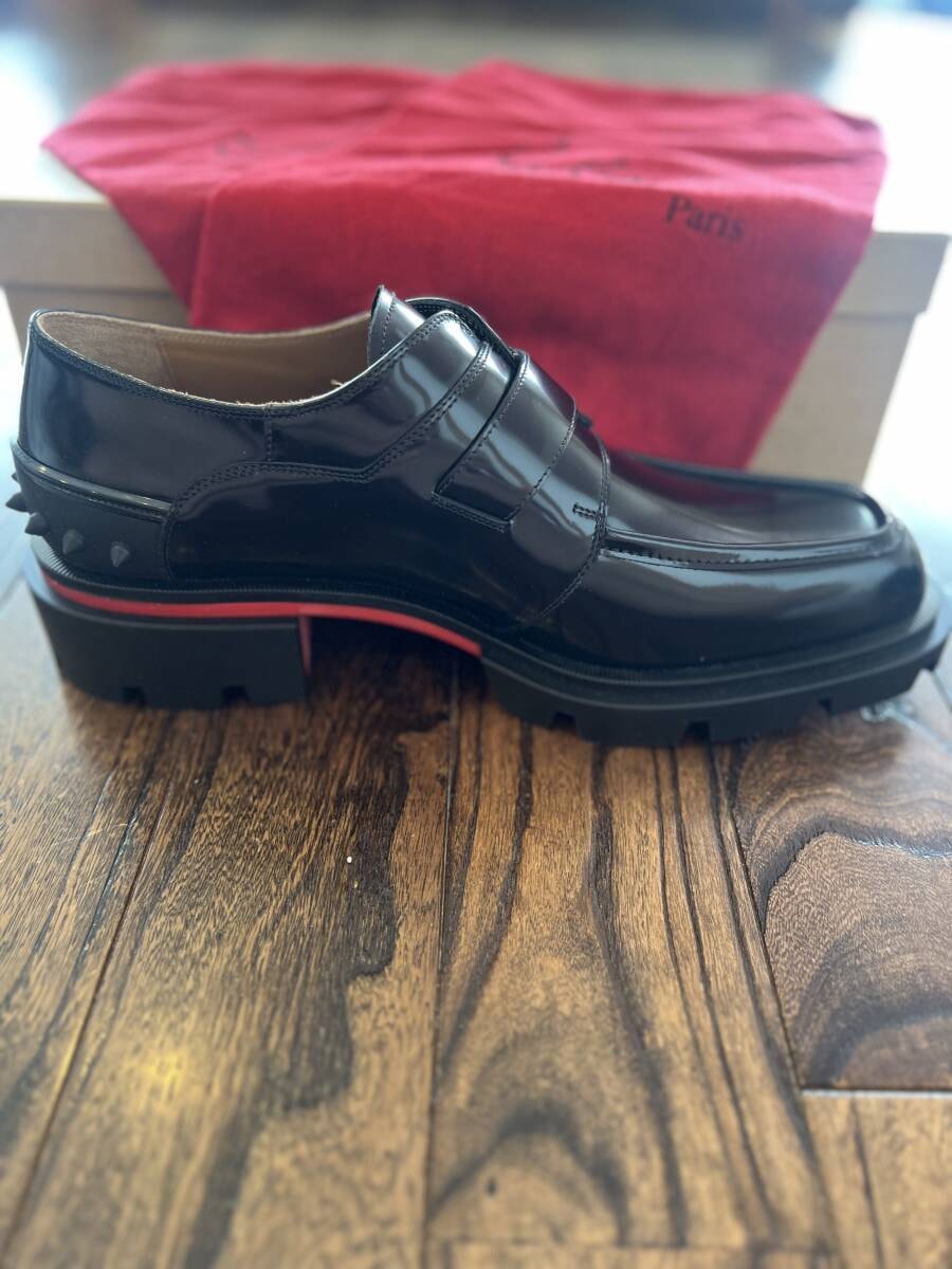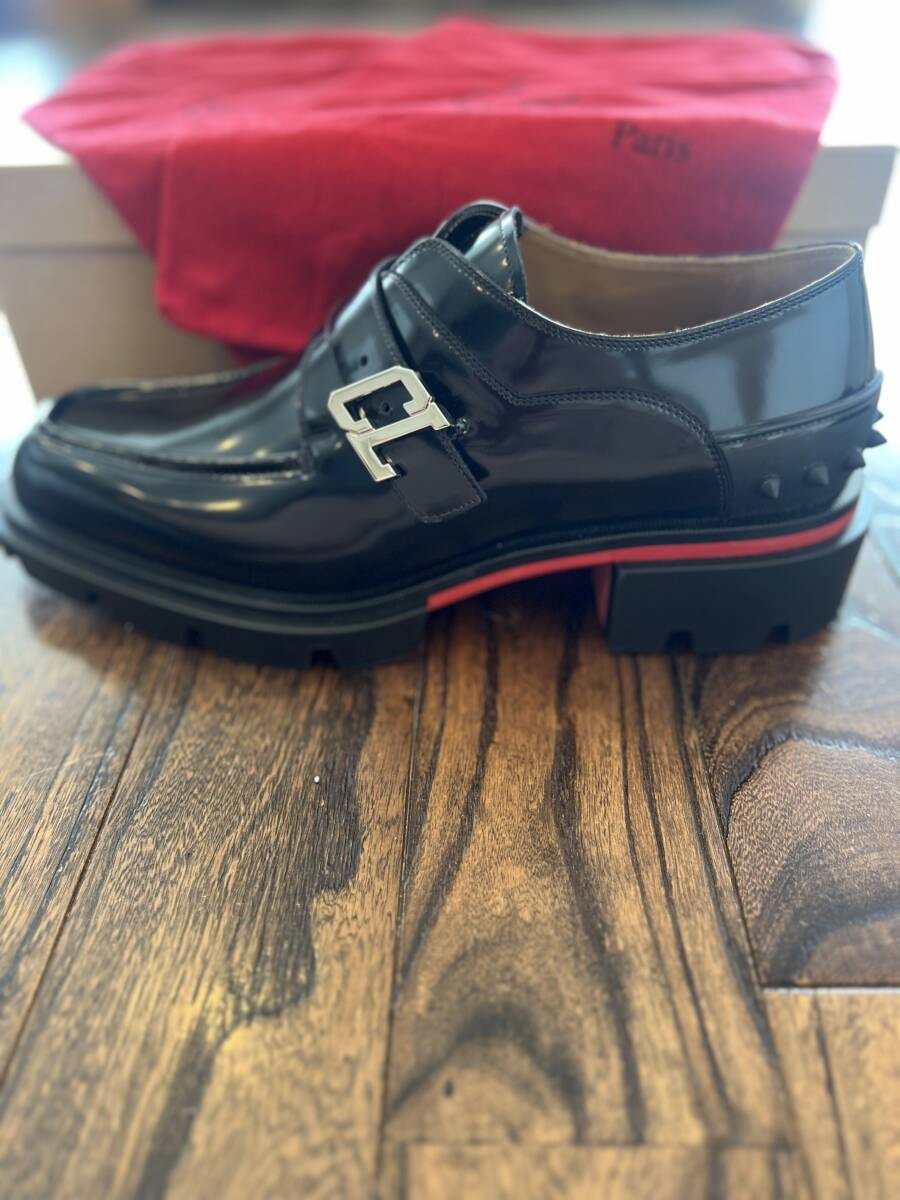 上質な光沢を放つブラックレザーに、ルブタンらしい洗練されたフォルム。
