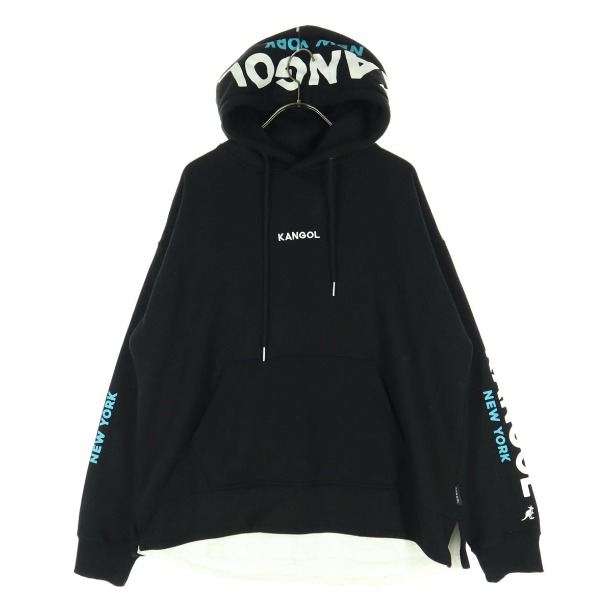 カンゴール 裏起毛 バックプリント 長袖 パーカー S ブラック KANGOL メンズ