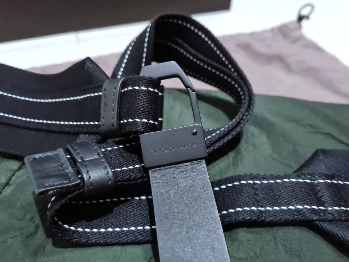 BOTTEGA VENETA TEXTILE LEATHER BELT WAIST SHOULDER BAG GREEN BLACKボッテガ ヴェネタ テキスタイル レザー ベルト ウエスト ショルダー ボディ バッグ グリーン ブラック