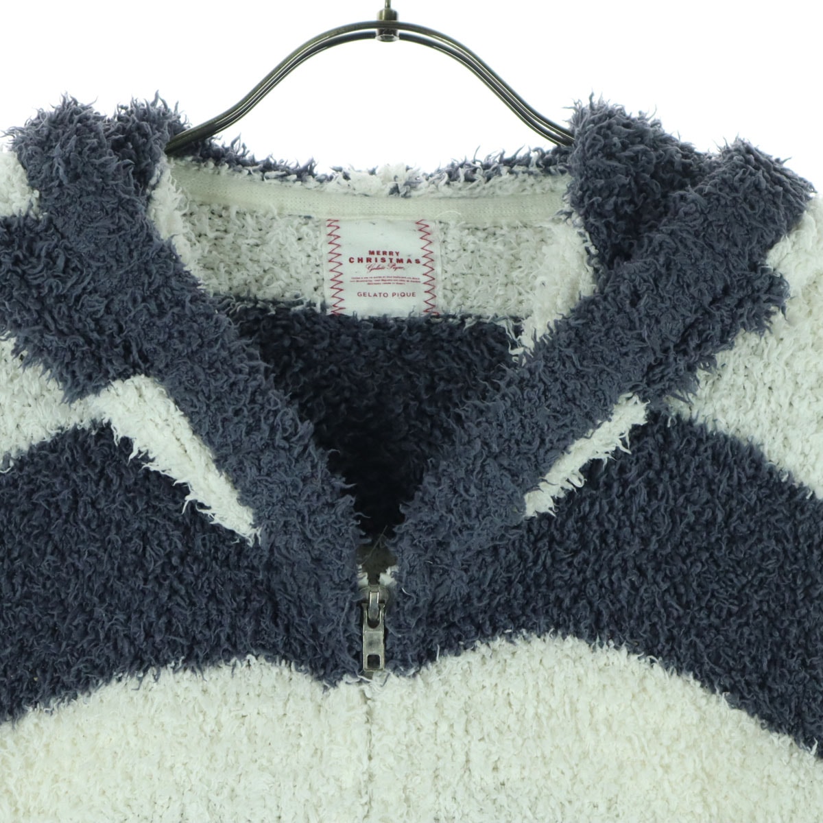 美品 ジェラートピケ ボーダー柄 長袖 フルジップ ルームウェア L グレー系 gelato pique メンズ