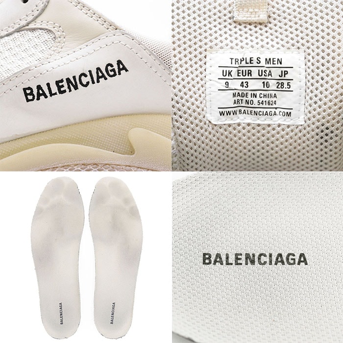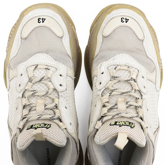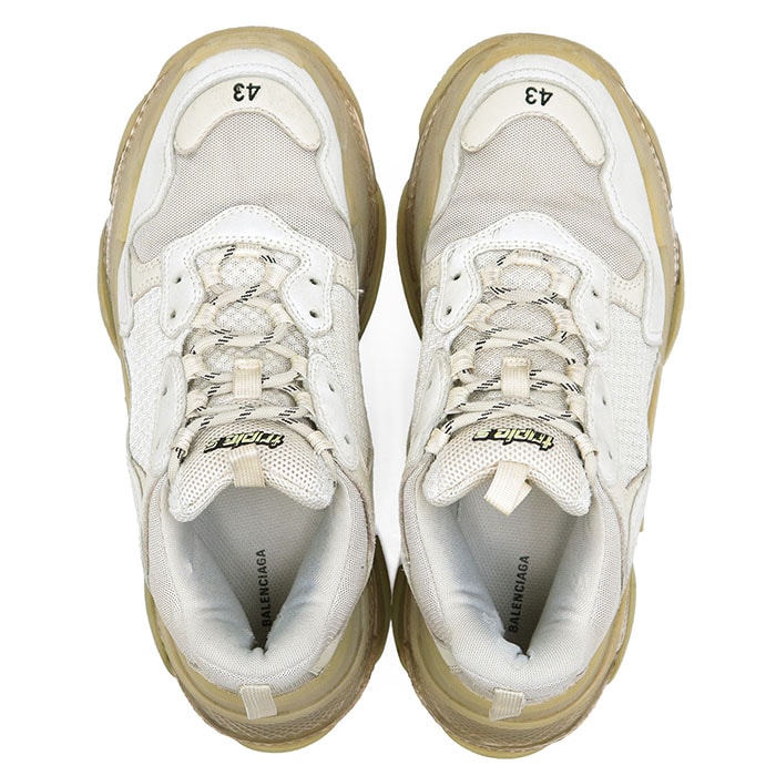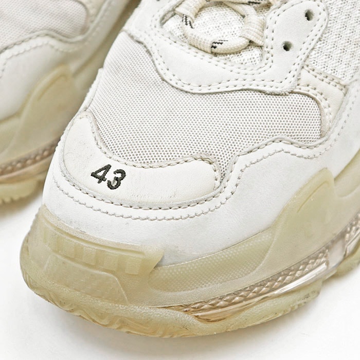 【シリーズ】BALENCIAGA バレンシアガ スニーカー ダッド TRIPLE S トリプルS ロゴ CLEAR SOLE クリアソール 厚底 刺繍 靴 メンズ 43 オフホワイト