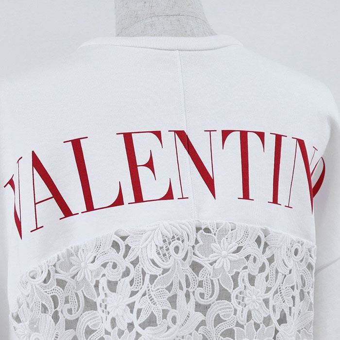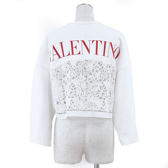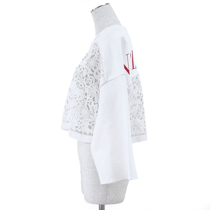 【シリーズ】トレーナー ロゴ プリント フローラル レース スウェット コンビネーション 長袖 レディース XS 白 伊製