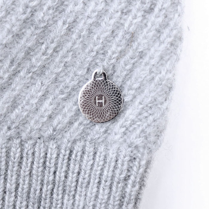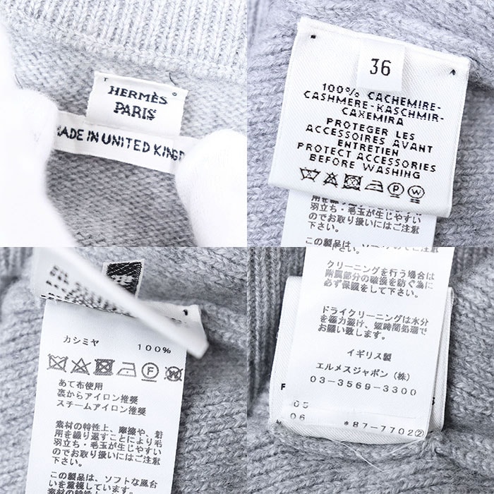【シリーズ】セーター ニット 2018AW H ロゴ チャーム カシミヤ100% クルーネック 切替 レディース 36 グレー 英国製