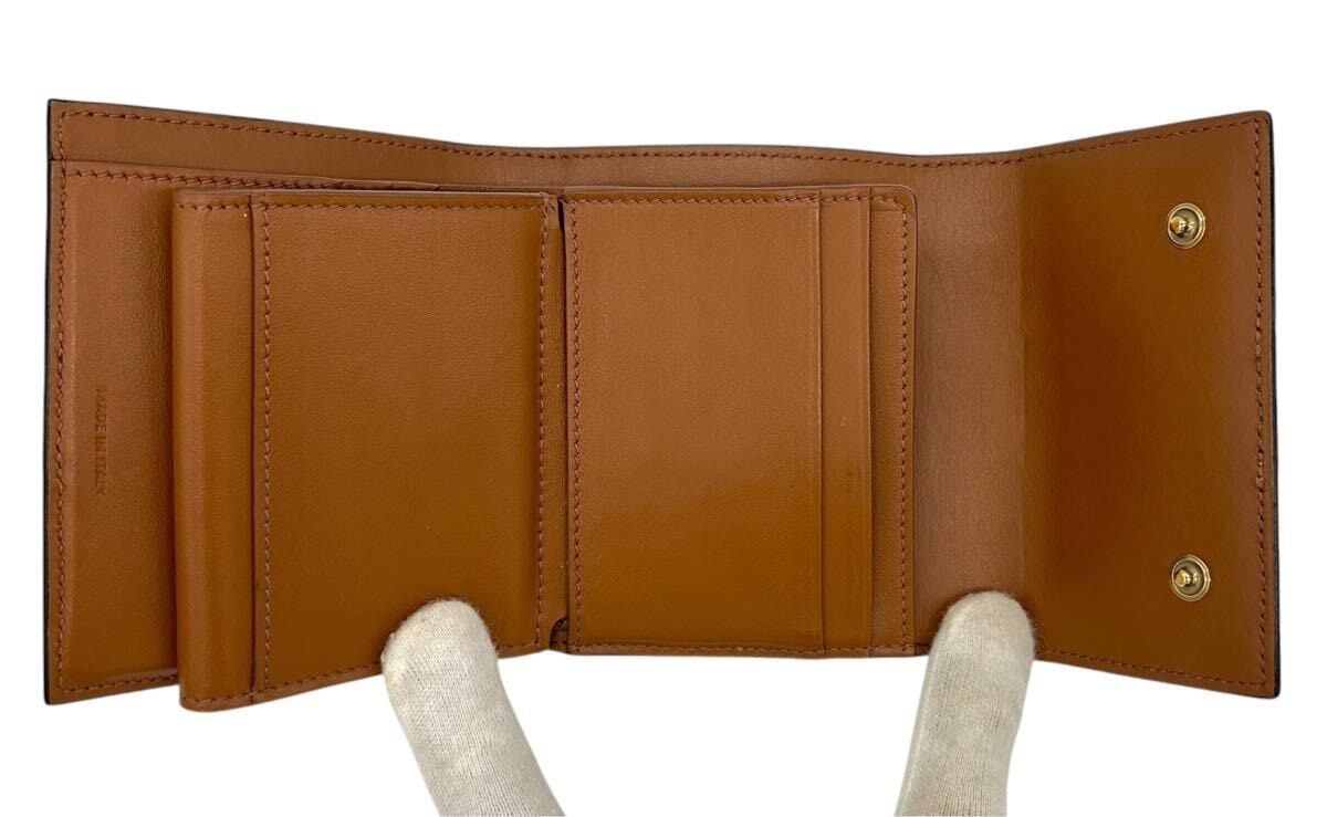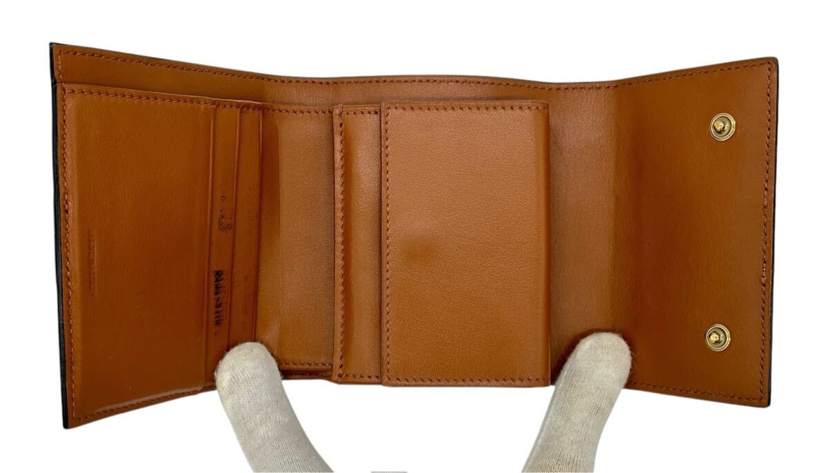 コンパクトなサイズの三つ折り財布、スモールトリフォールド。素材のグレインドカーフスキンはキズにも強いので、毎日持ち歩く小物アイテムとして最適です。