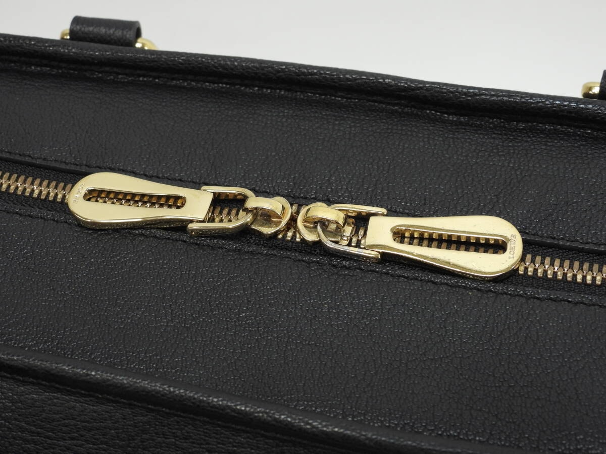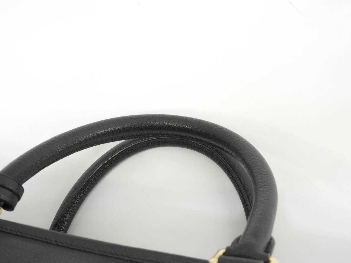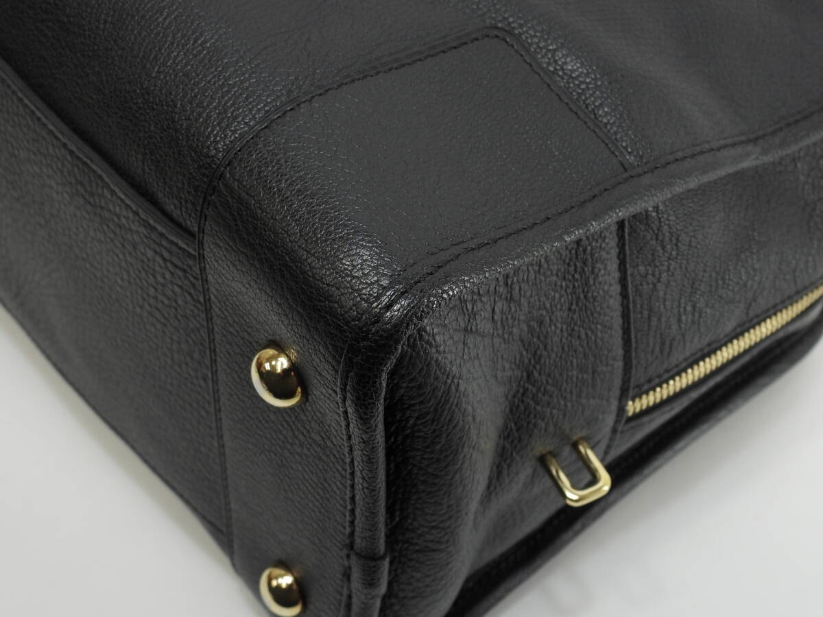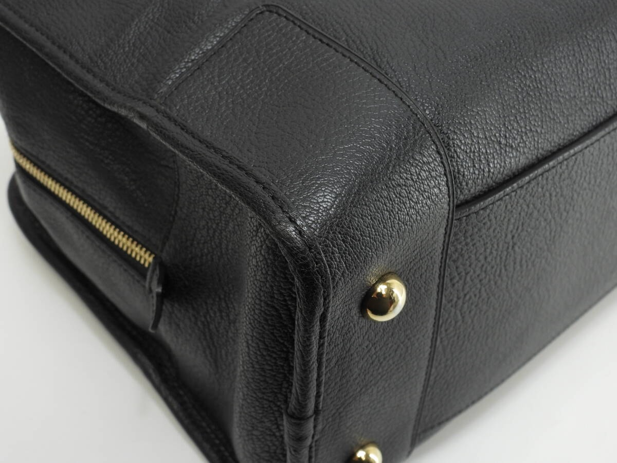 情報 : ボディは柔らかいレザーで仕上げられておりますので型崩れ・しわが少しございますが、スレ・汚れもなく綺麗です。底部角・バッグ淵にスレはございません。ハンドルは気になるスレ・汚れ・弱りもなく状態は良いです。バッグ内はシミ・汚れもなく綺麗です。金具部分は薄スレ・小傷が少しあり、金具同士が擦れる部分にメッキ剥げが少しございますが、全体的に綺麗です。