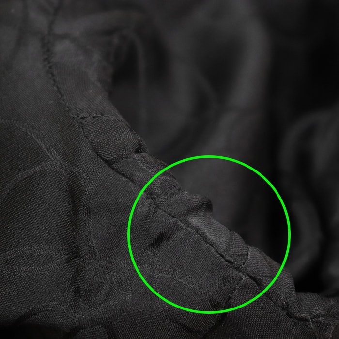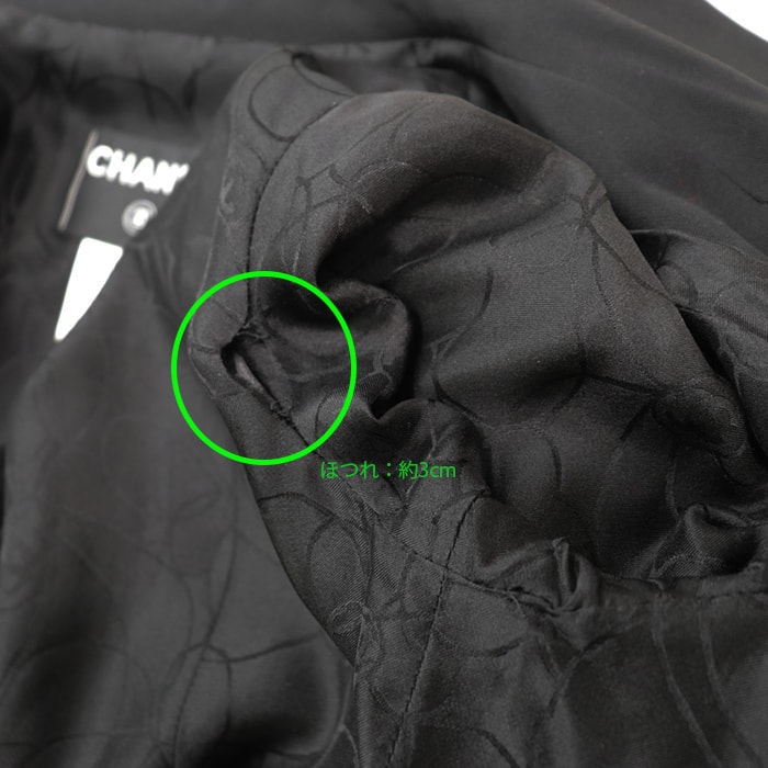 左脇裏地にほつれや肩回り裏地にゆるみ、右脇と袖口裏に擦れ汚れ、両袖に押し跡がございます。