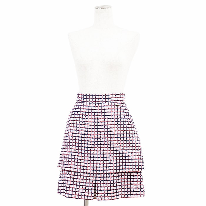 【シリーズ】CHANEL シャネル スカート P60835 レイヤード風 ツイード COCOマーク チャーム ラメ混 ハンガー付属 レディース 36 マルチカラー