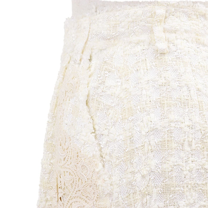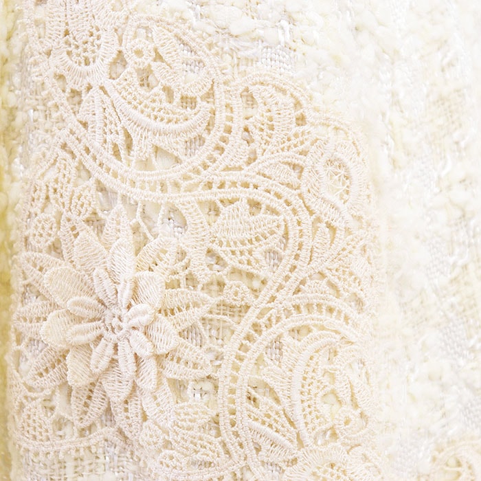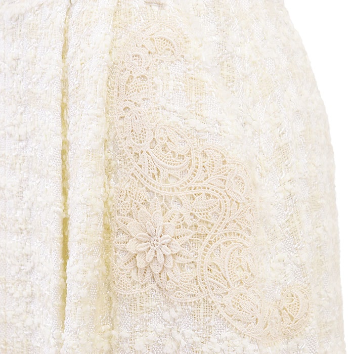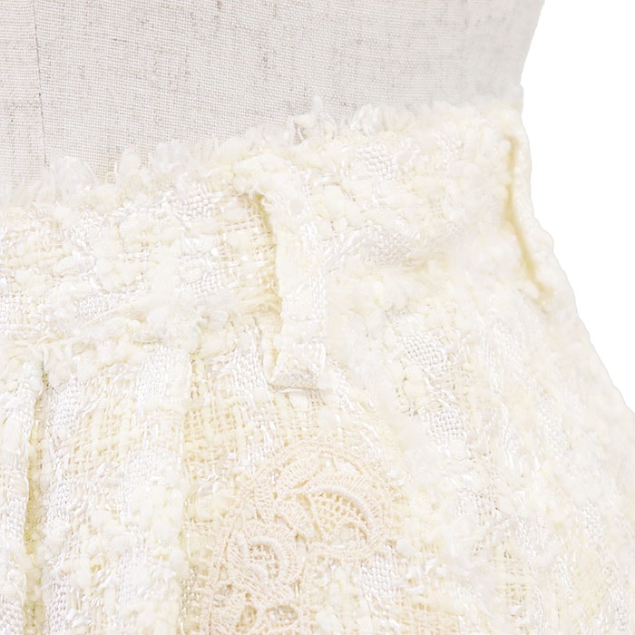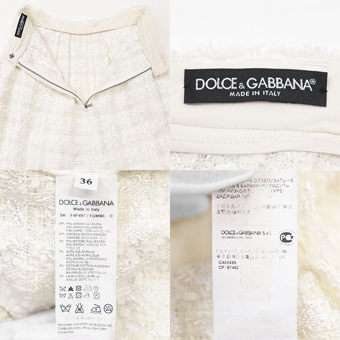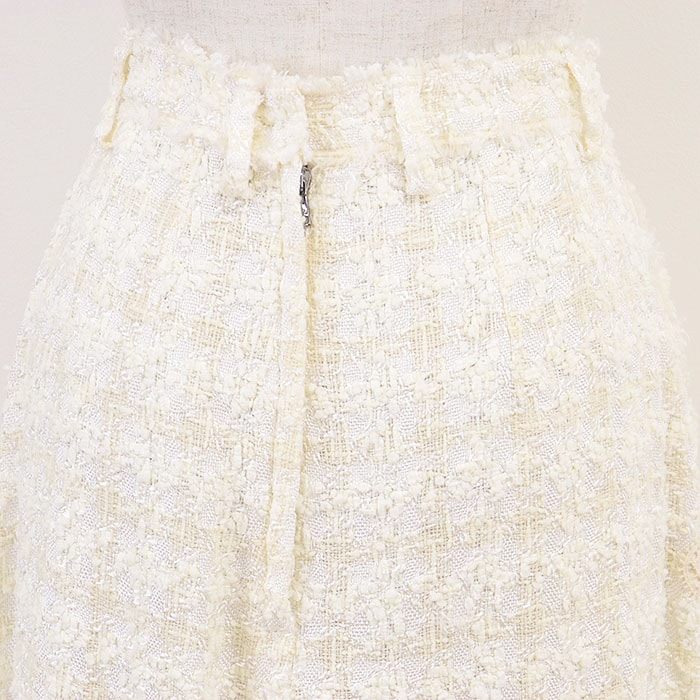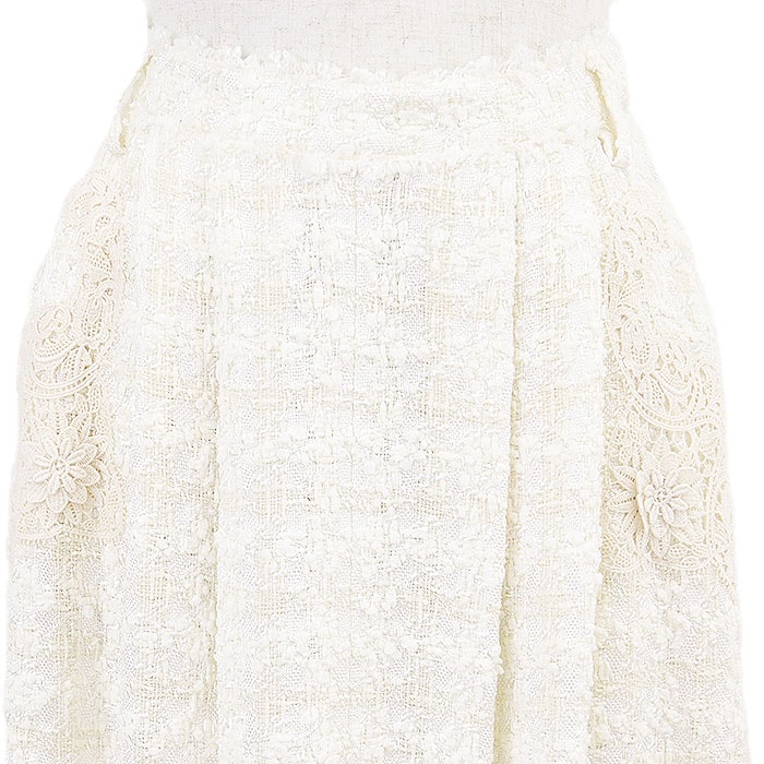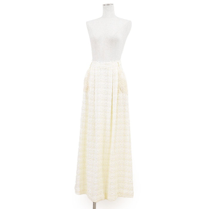 【シリーズ】DOLCE & GABBANA ドルチェ アンド ガッバーナ スカート フレア ツイード 花柄 刺繍 ロング丈 レディース 36 アイボリー 伊製