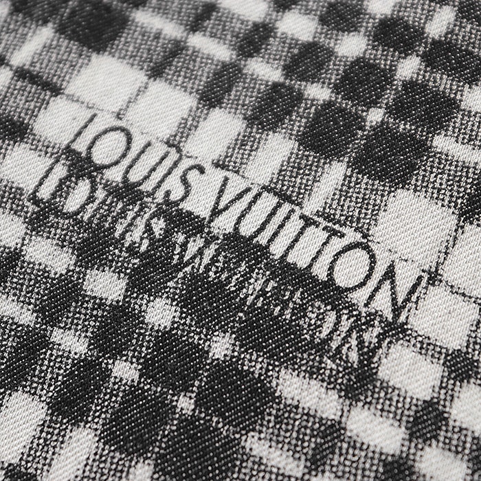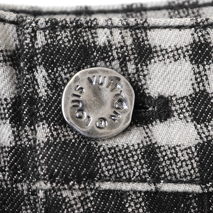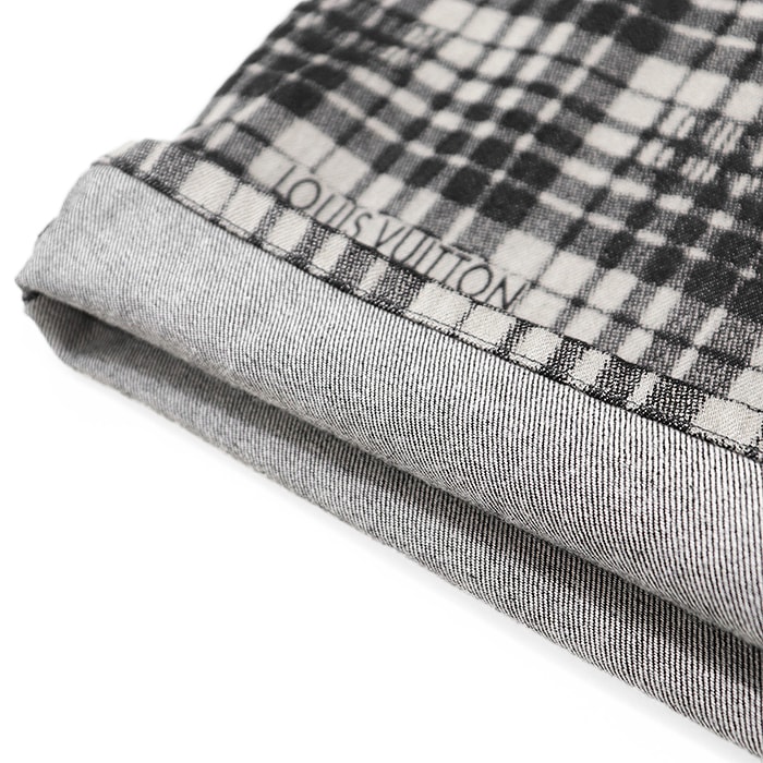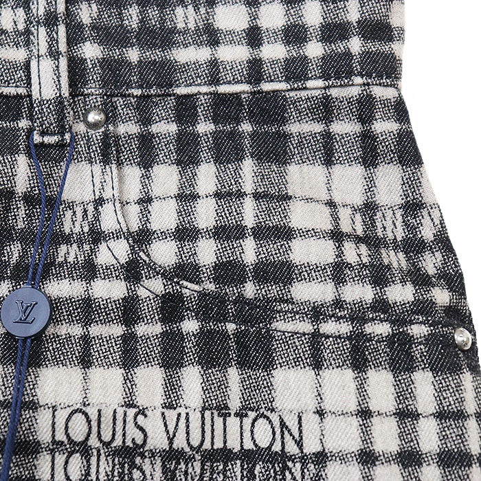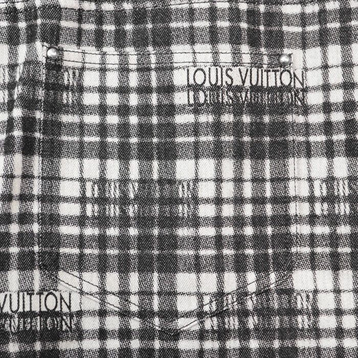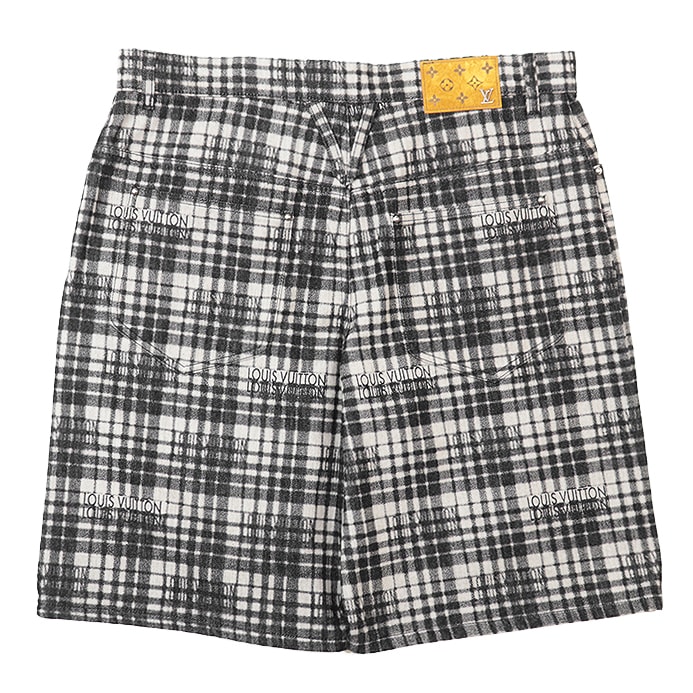 【シリーズ】LOUIS VUITTON ルイ・ヴィトン ショートパンツ チェック柄 LV モノグラム レザーパッチ ボトムス メンズ 36 黒 グレージュ 仏製