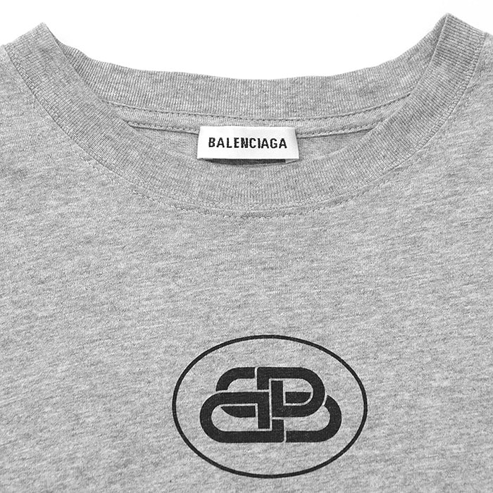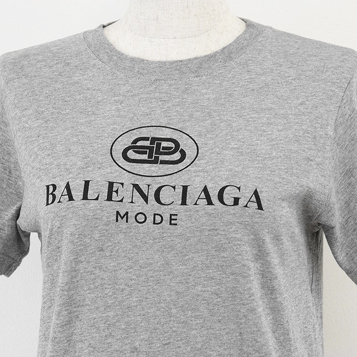 【シリーズ】BALENCIAGA バレンシアガ Tシャツ 2019年 シグネチャー ロゴ BB プリント 丸首 半袖 トップス レディース M 灰色 ポルトガル製