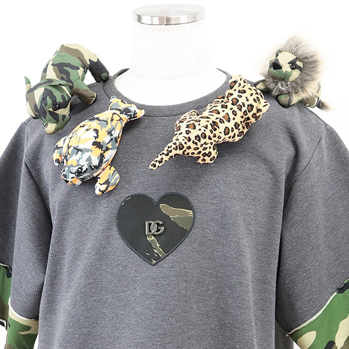 【シリーズ】DOLCE&GABBANA ドルチェアンドガッバーナ 半袖Tシャツ ダンボールニット DG ロゴ 動物 ぬいぐるみ 取外可 レディース S グレー