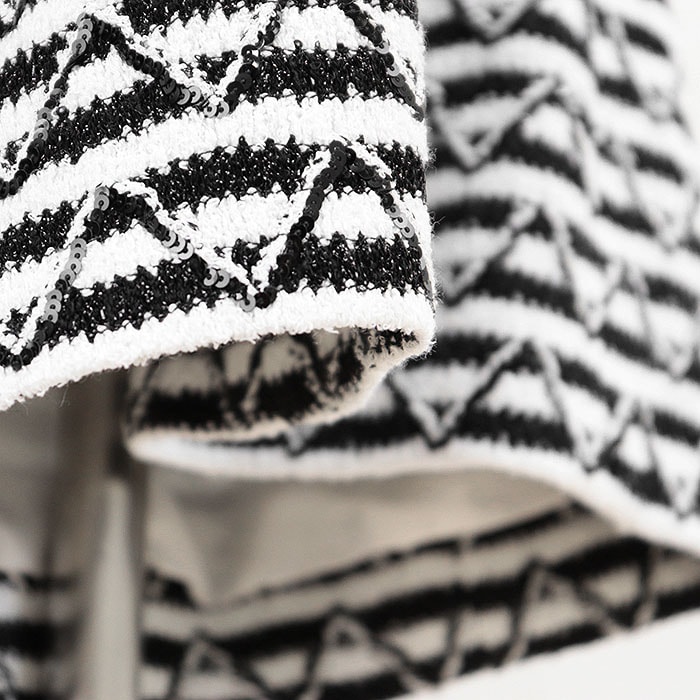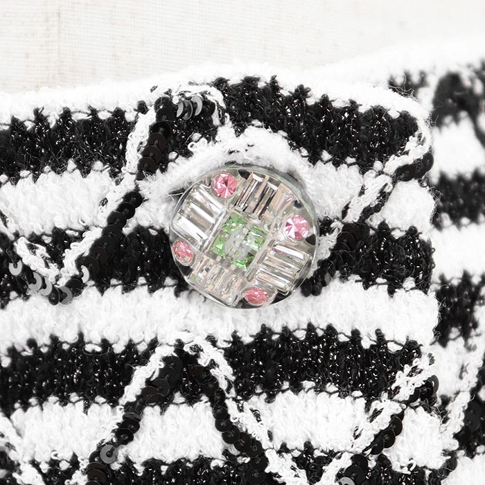 【シリーズ】バミューダパンツ P77258 キュロット スパンコール ラメ ジオメトリック レディース 42 黒 白