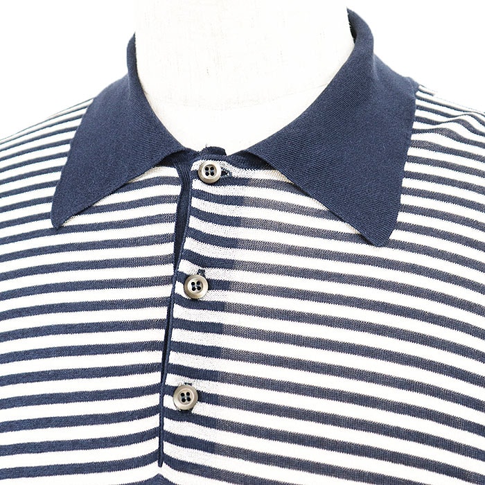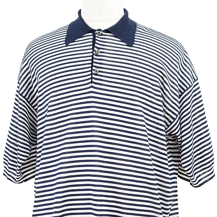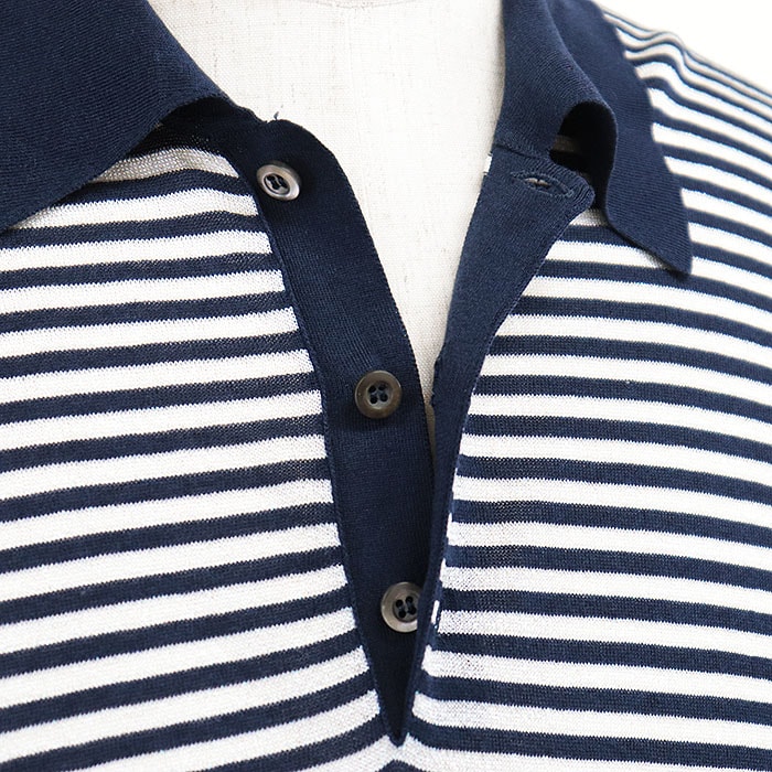 【アイテム】ニット ハイゲージ トライアングルパッチ ボーダー柄 ハーフスリーブ ポロシャツ